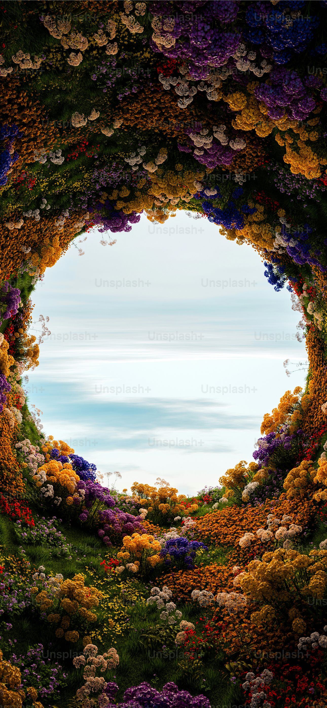 1290x2796 a circle of flowers with a sky in the background -  iPhone Wallpaper