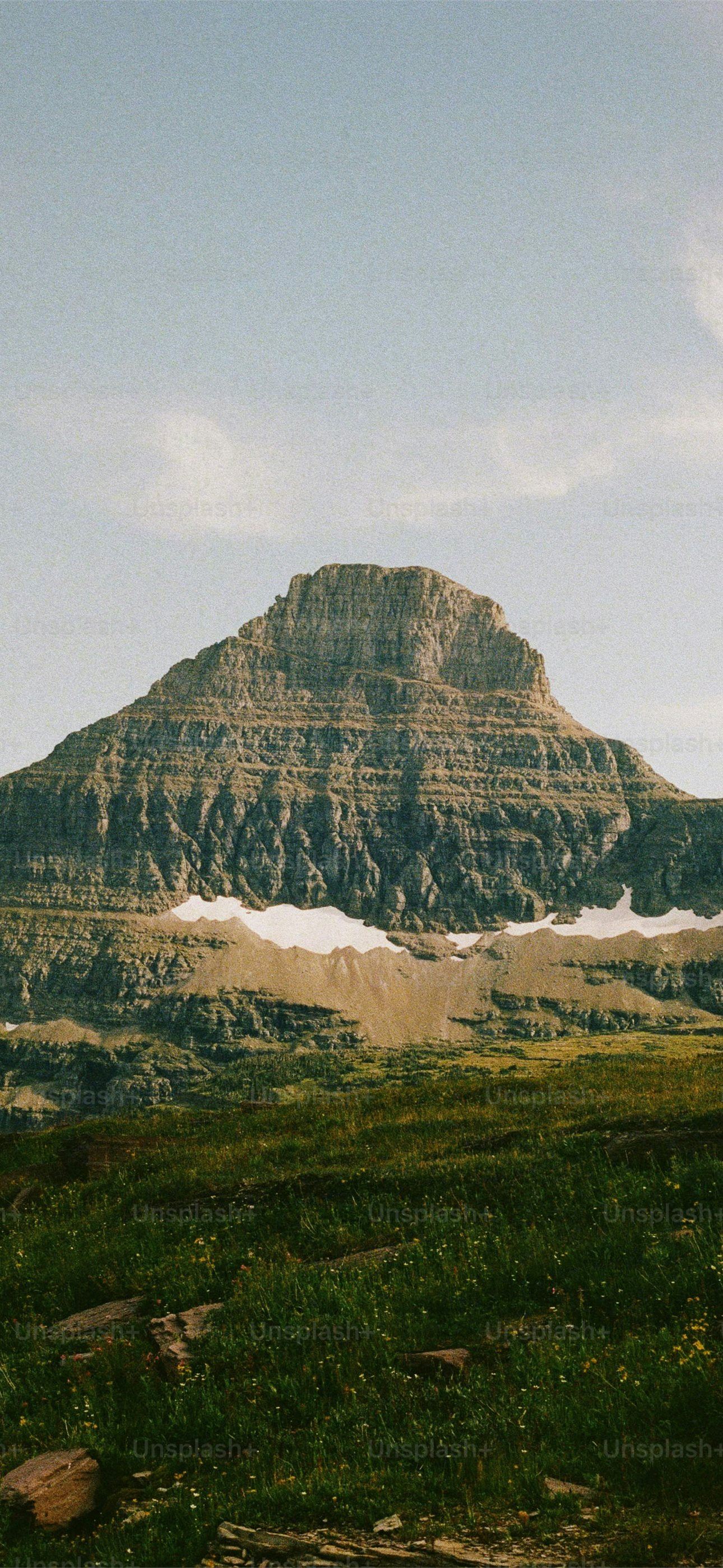 Majestic mountain rises above a green meadow iPhone wallpaper