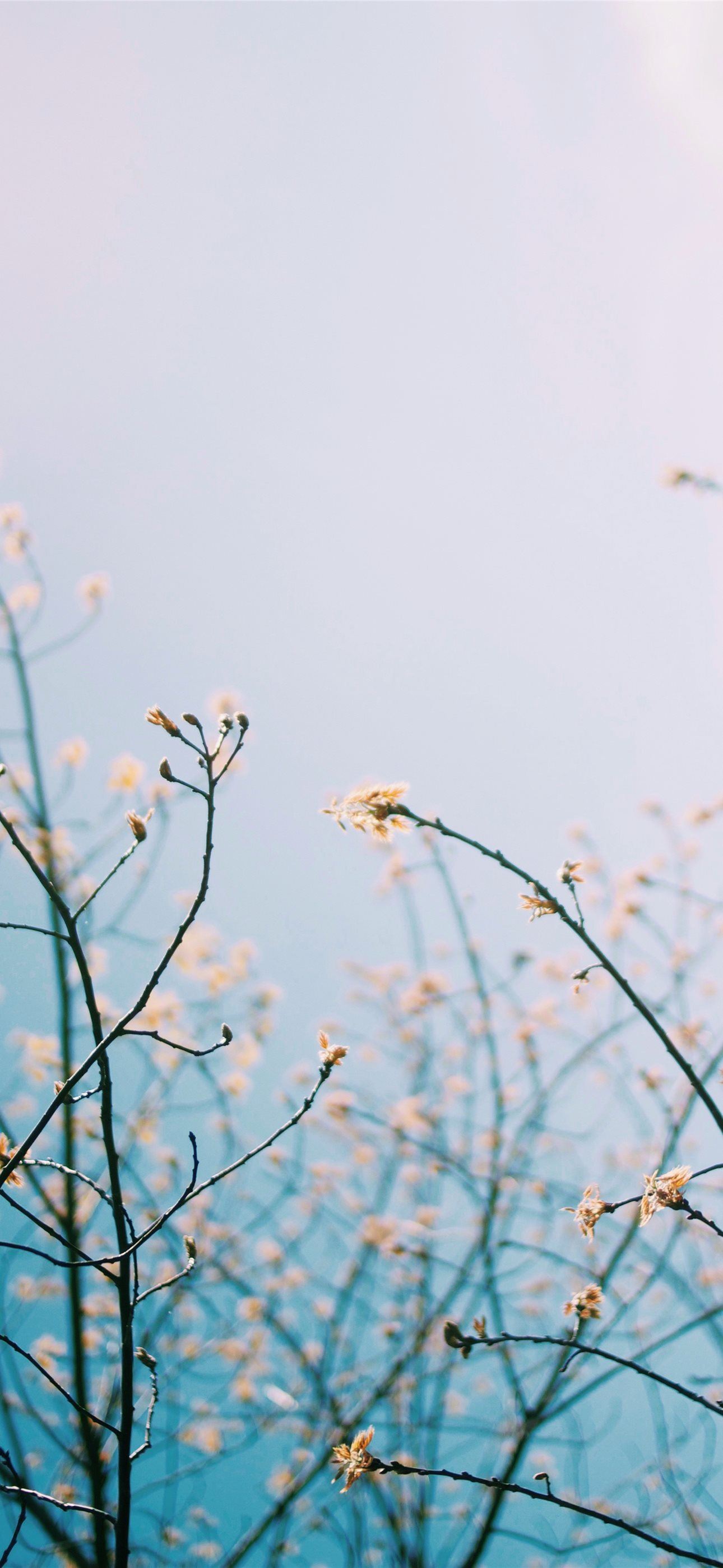 1290x2796 a branch with white flowers against a blue sky -  iPhone Wallpaper