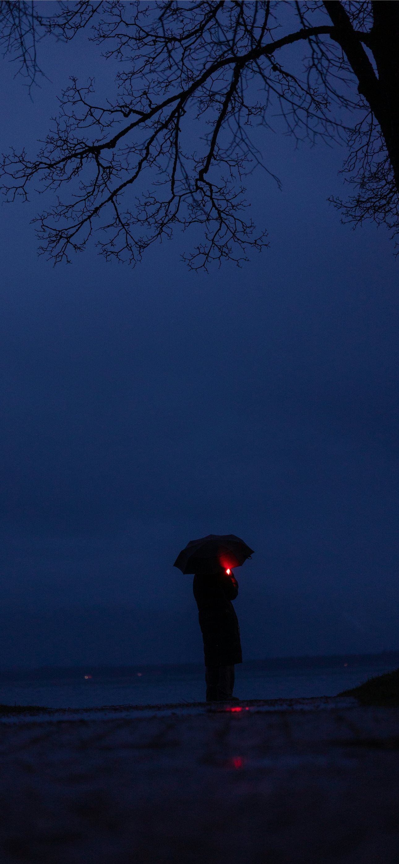 a person standing under a tree holding an umbrella iPhone wallpaper