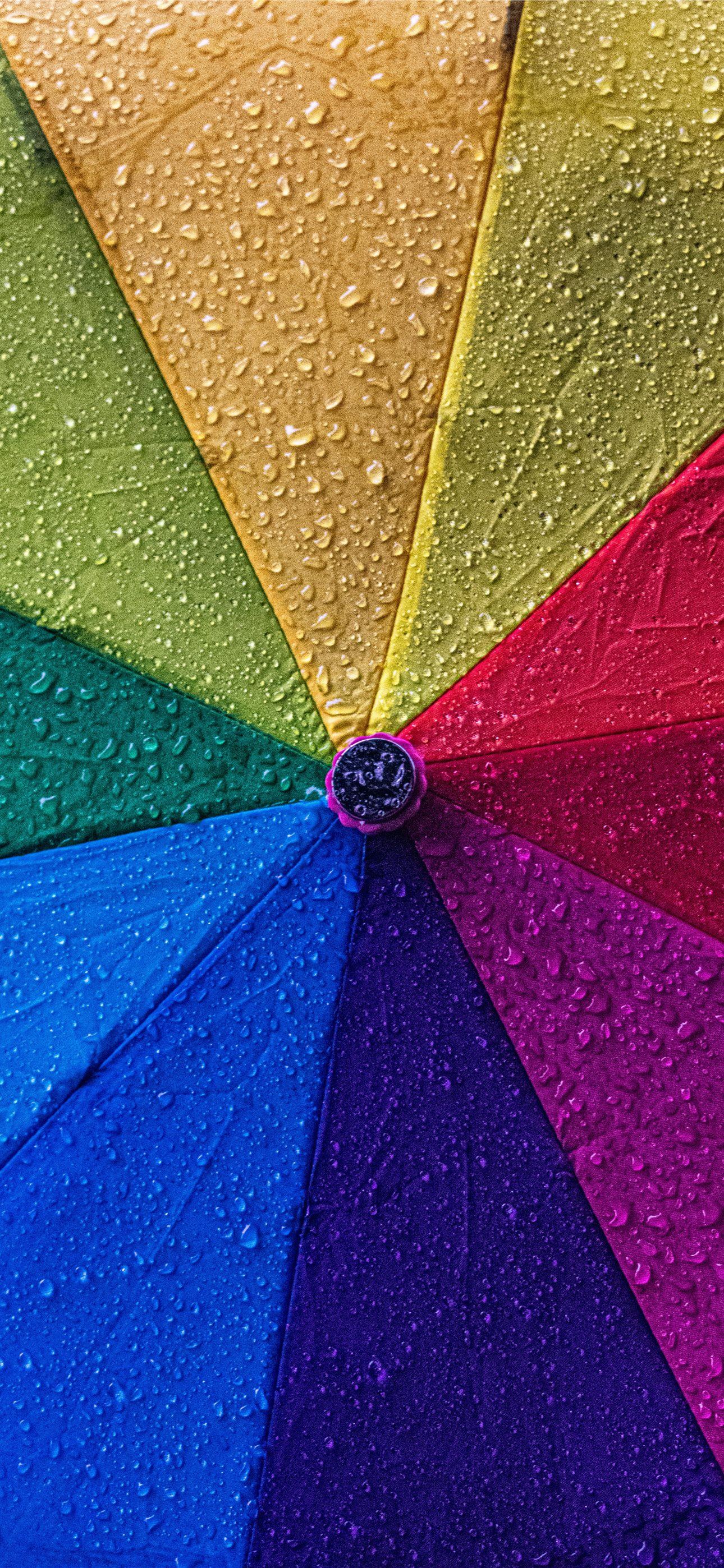 a multicolored umbrella with drops of water on it iPhone wallpaper