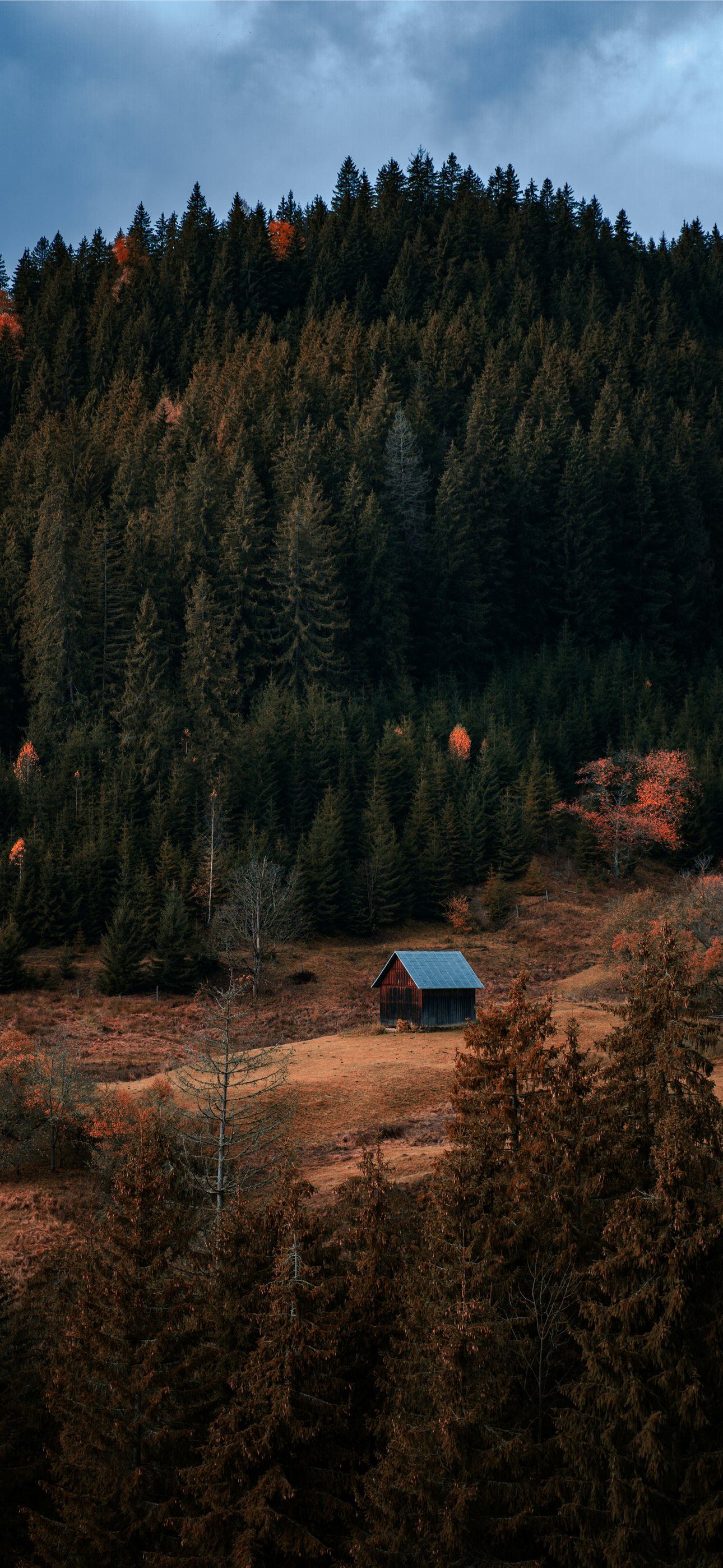 a cabin nestled in the middle of a forest iPhone wallpaper
