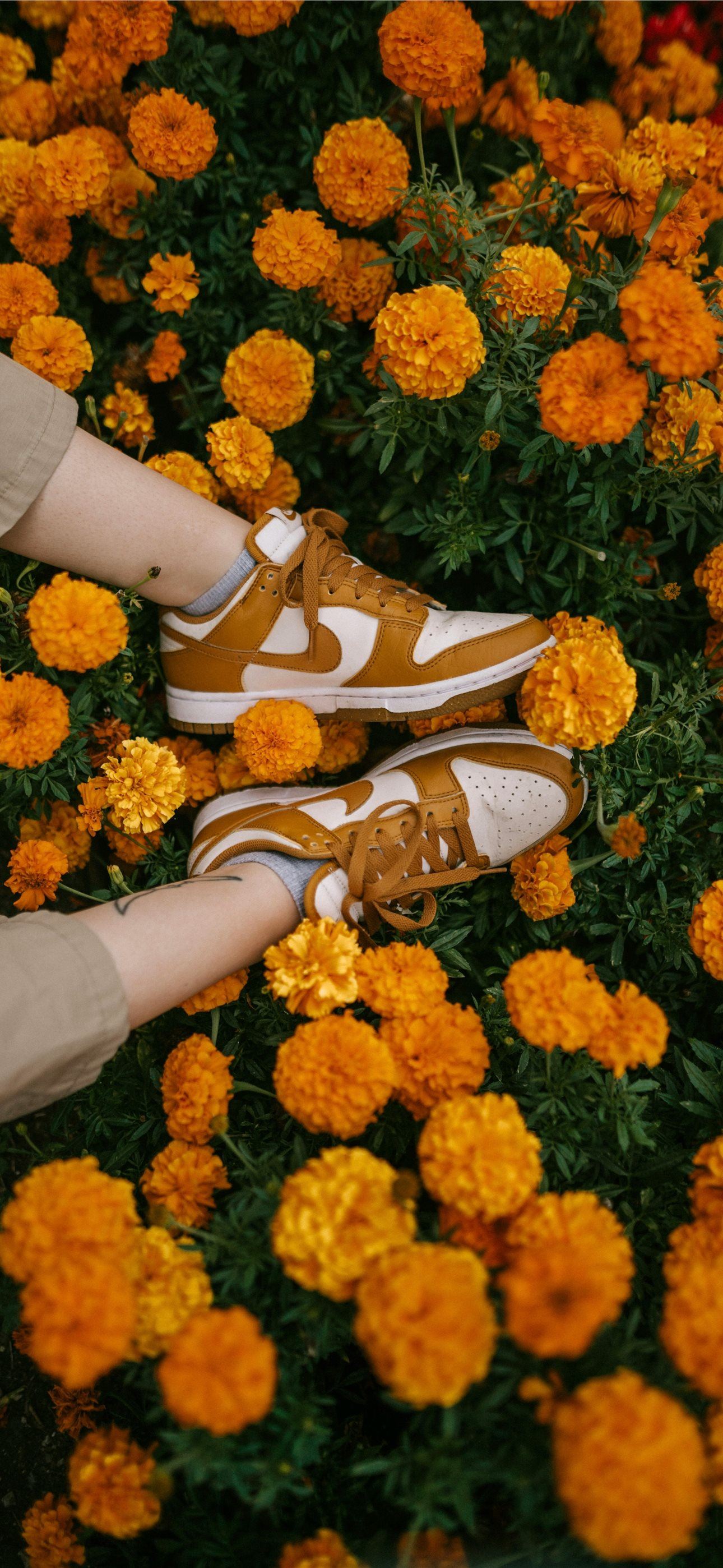 a person standing in a field of flowers iPhone wallpaper