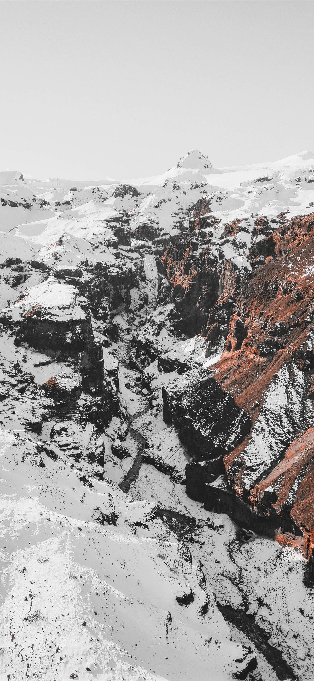 1290x2796 Snowy mountains tower over a deep rocky canyon  -  iPhone Wallpaper