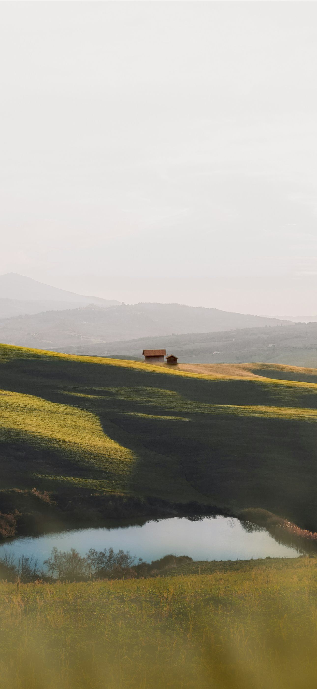 1290x2796 green grass field near lake under white sky during... -  iPhone Wallpaper