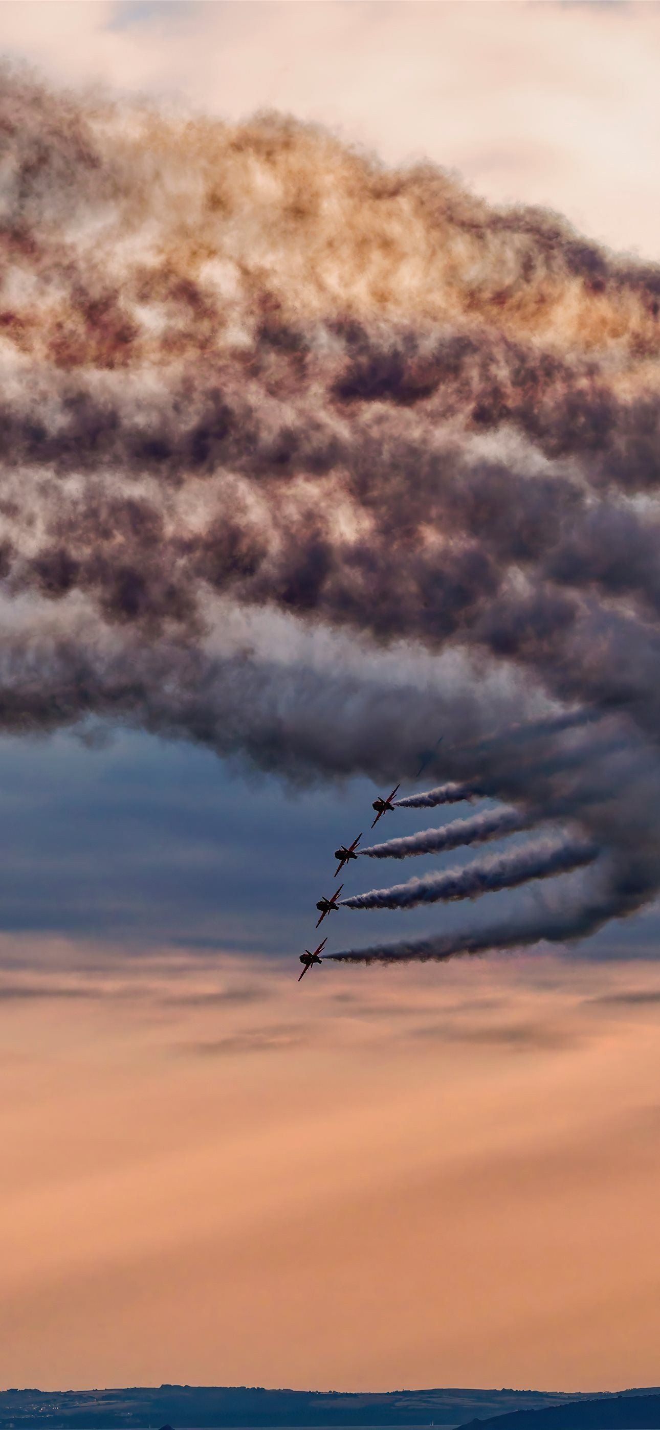 1290x2796 Airplanes create smoke trails in a cloudy sky -  iPhone Wallpaper