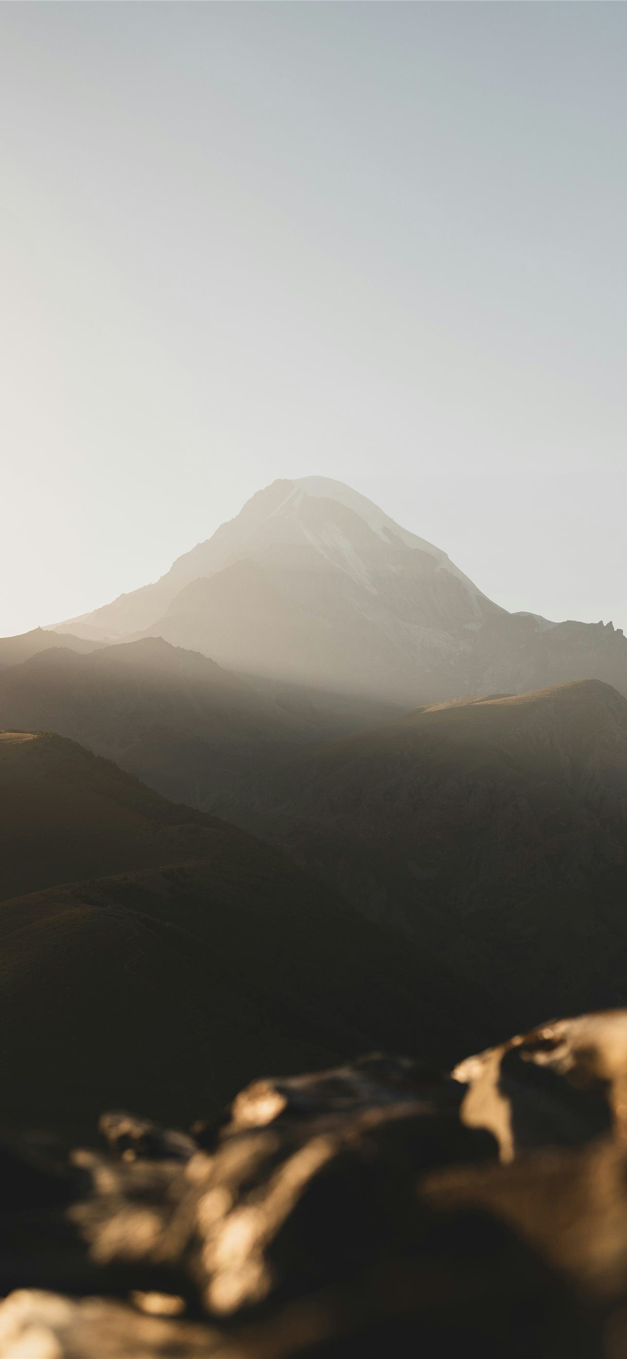 1290x2796 Snow capped mountain peak bathed in soft light -  iPhone Wallpaper