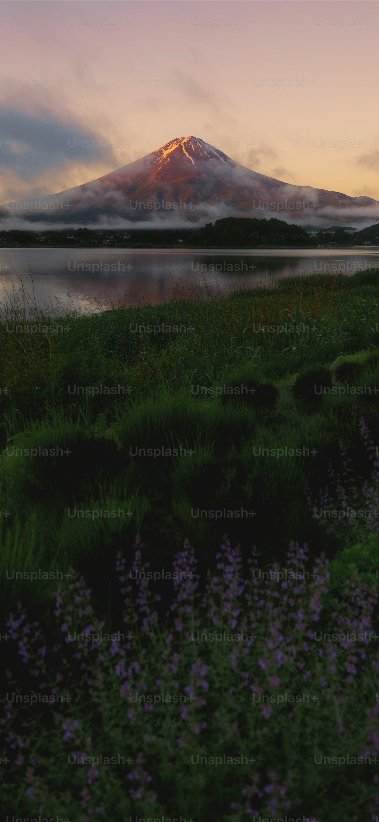 Sunrise illuminates mount fuji and its reflection iPhone wallpaper