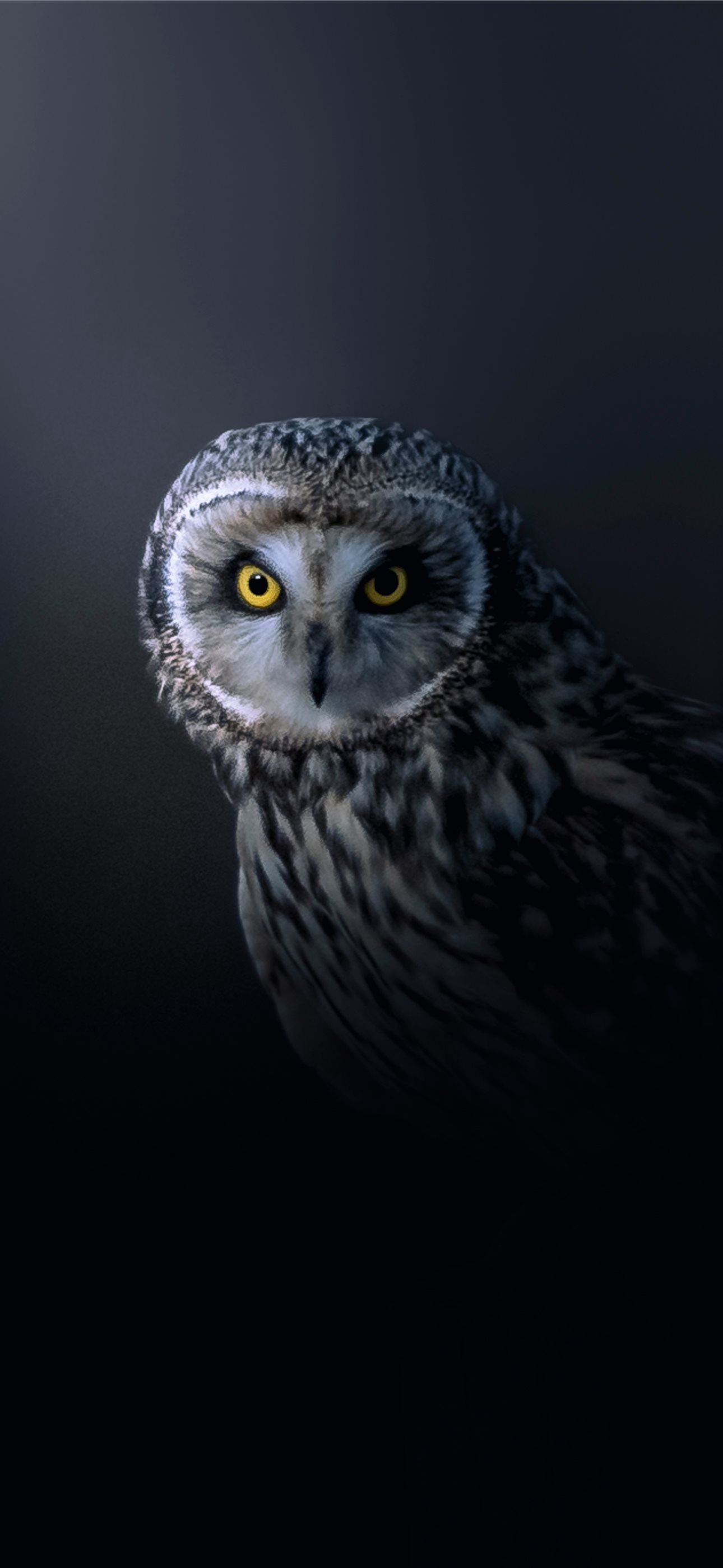 1290x2796 a close up of an owl with yellow eyes -  iPhone Wallpaper