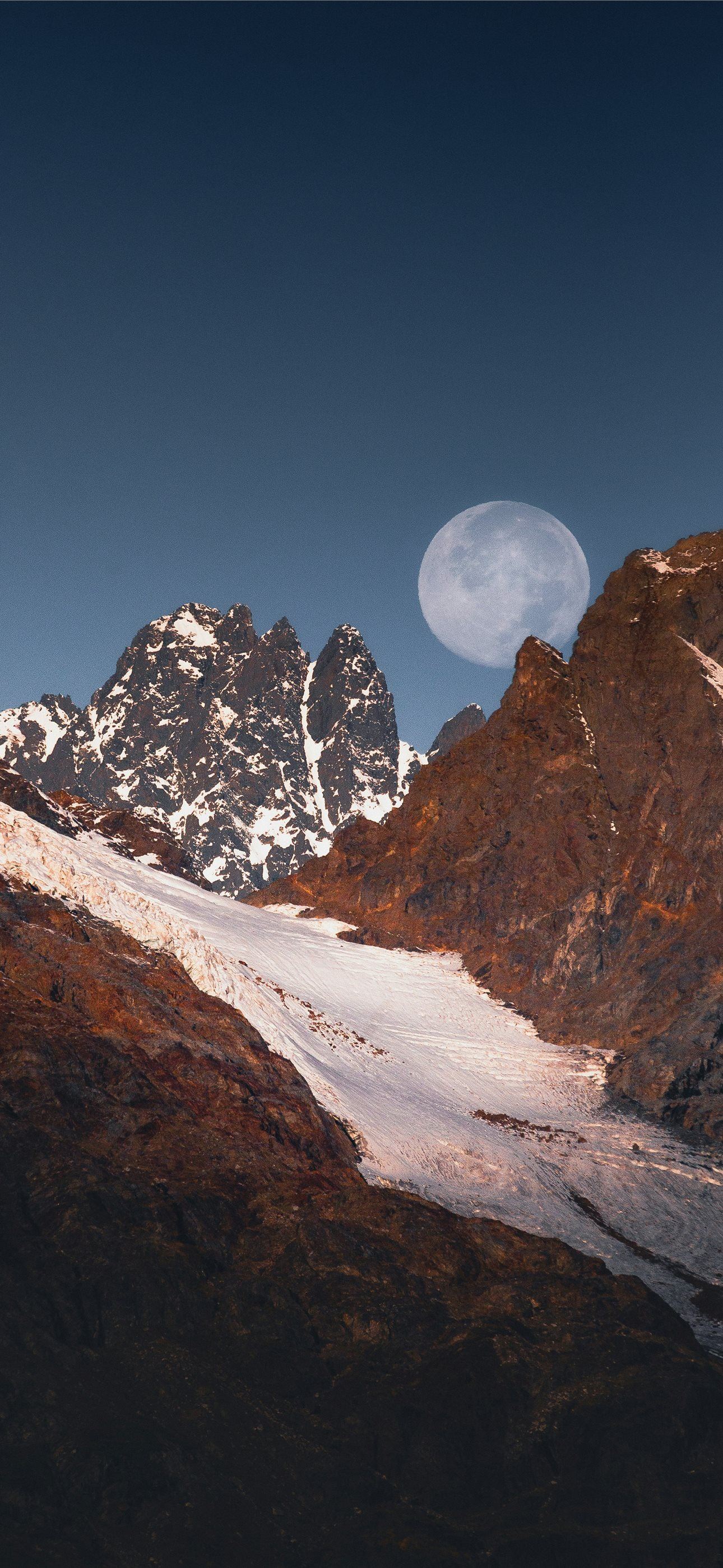 1290x2796 Full moon rises over snow capped rocky mountains  -  iPhone Wallpaper