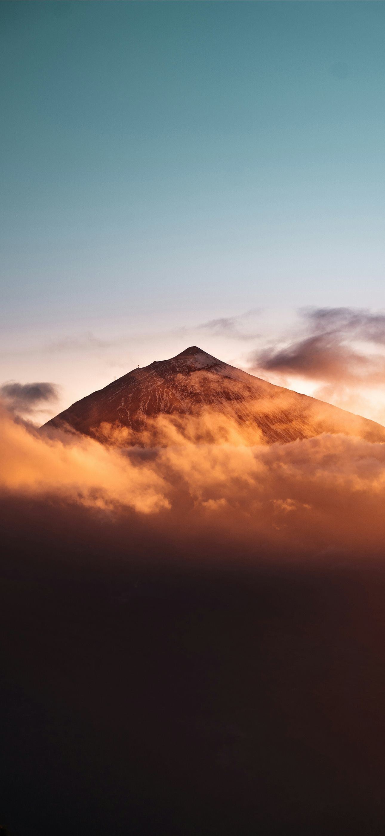 1290x2796 a mountain covered in clouds at sunset -  iPhone Wallpaper