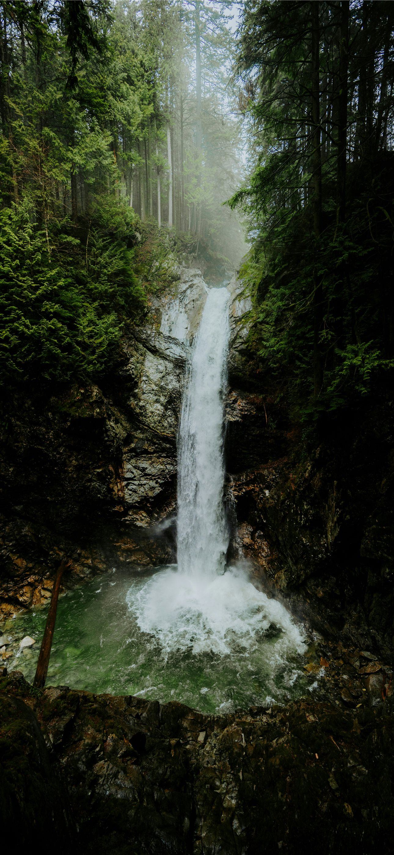 1290x2796 a waterfall in the middle of a forest -  iPhone Wallpaper