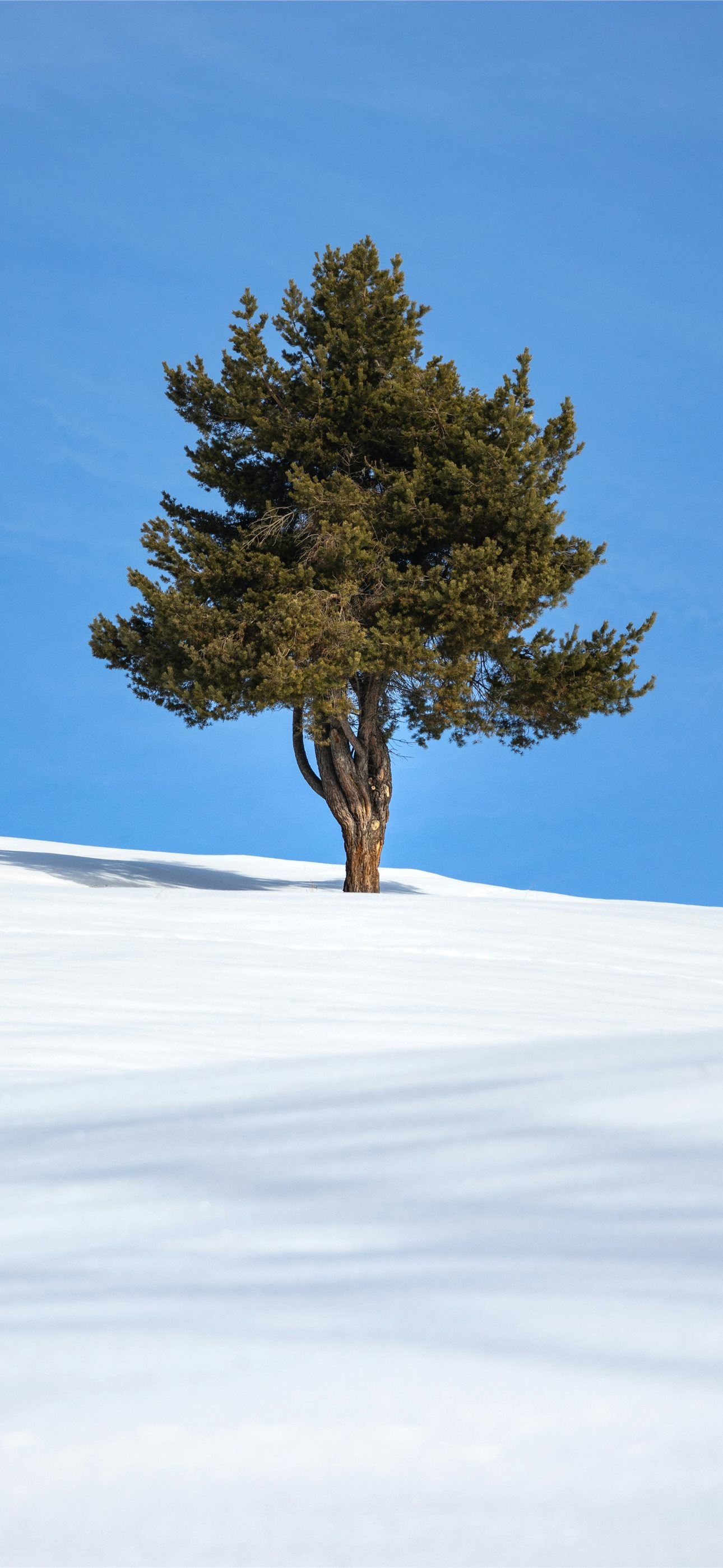 1290x2796 a lone tree on a snowy hill under a blue sky -  iPhone Wallpaper