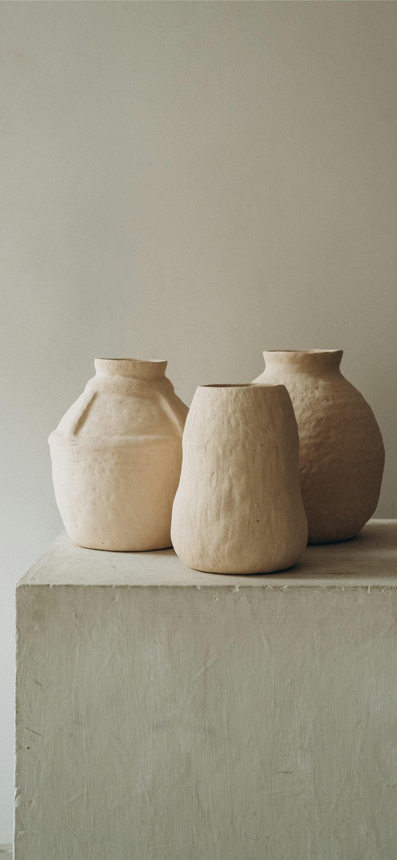 1290x2796 3 brown clay vases on white concrete table -  iPhone Wallpaper