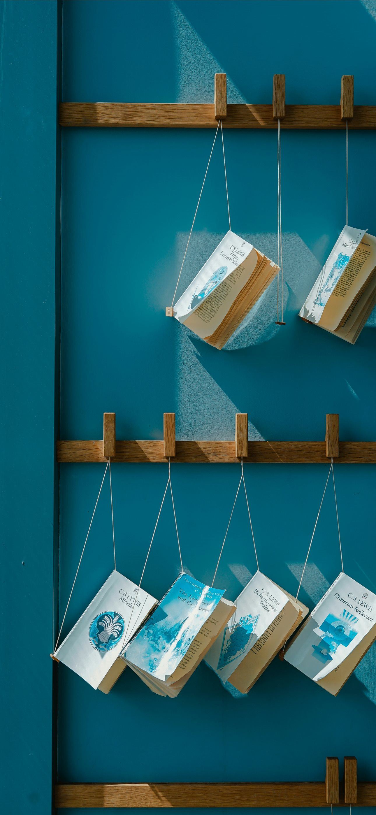1290x2796 six hanging books on wall -  iPhone Wallpaper