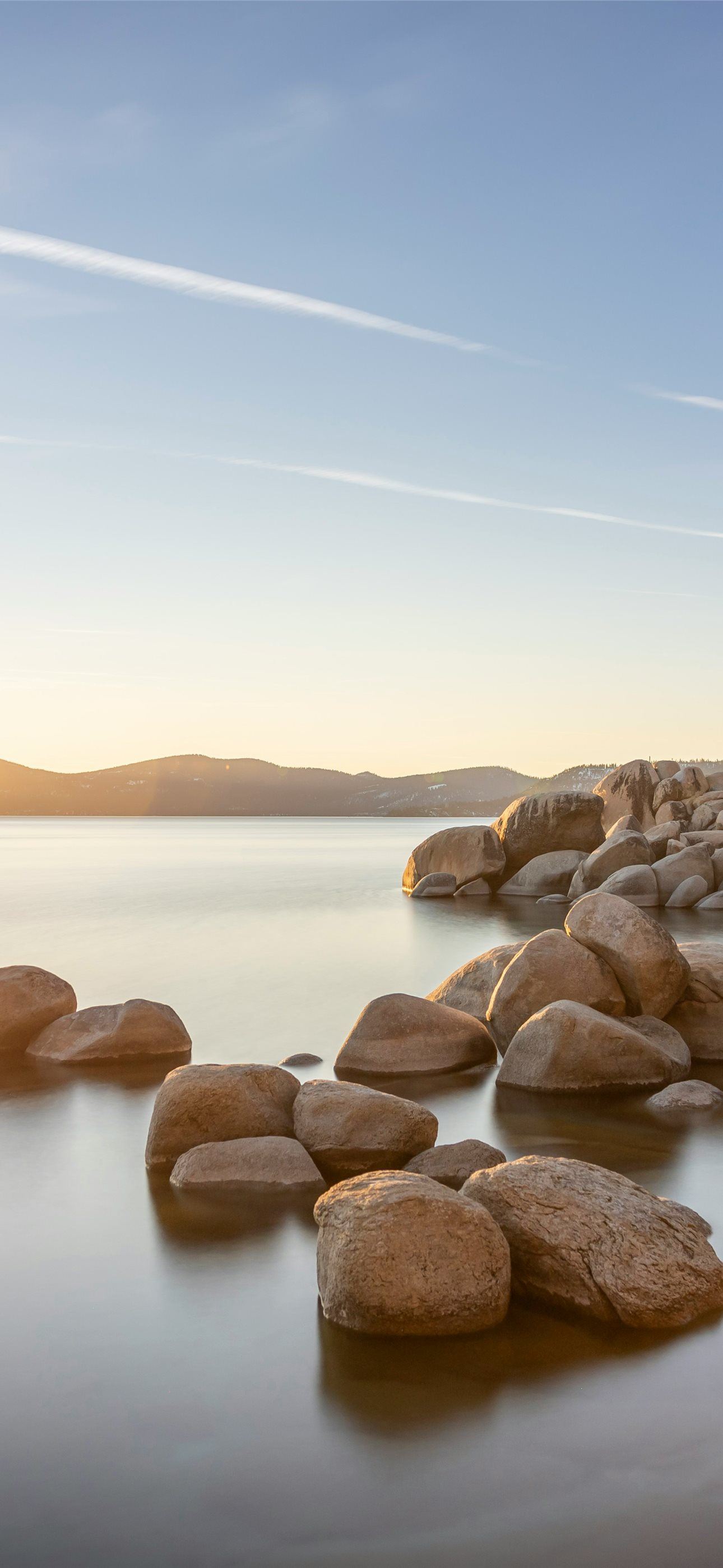 a large body of water surrounded by rocks iPhone wallpaper