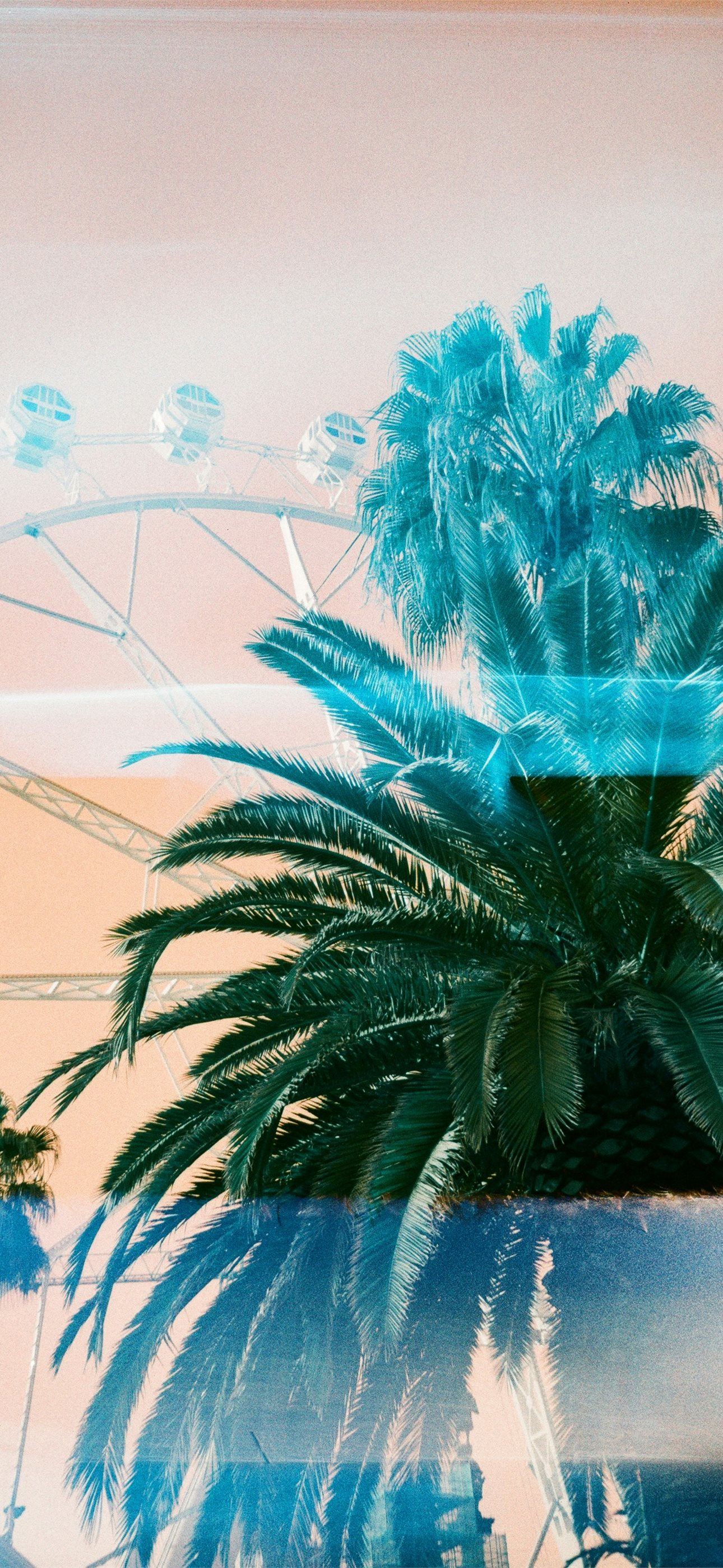 a palm tree and a ferris wheel in the background iPhone wallpaper
