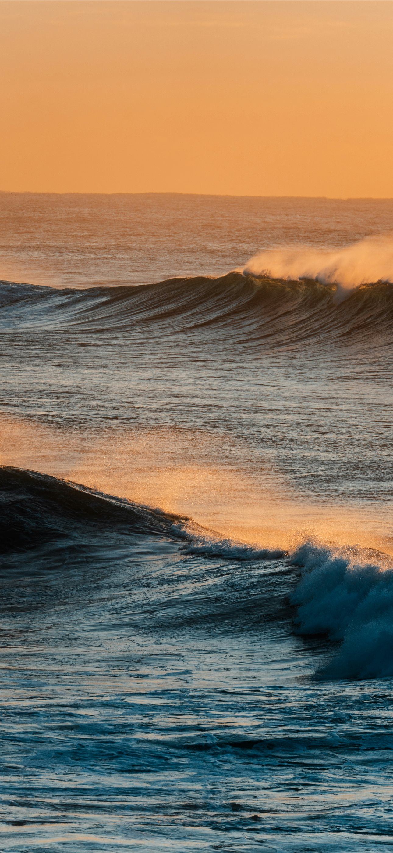 1290x2796 Ocean waves at sunset with warm orange sky -  iPhone Wallpaper