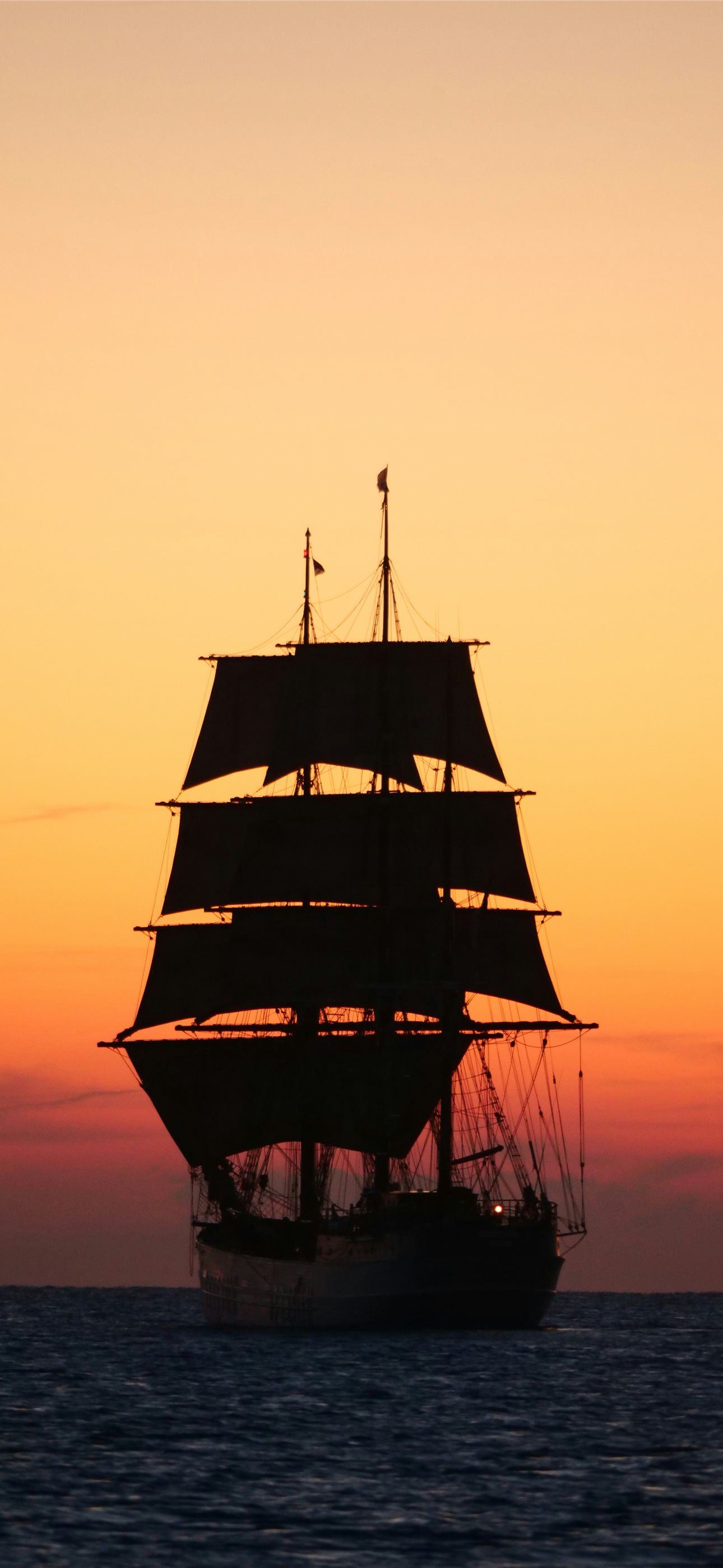 A tall ship sails on the ocean at sunset iPhone wallpaper