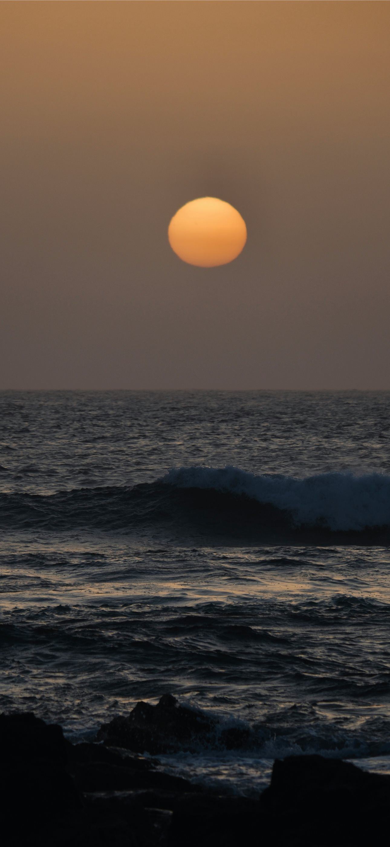 1290x2796 A large orange sun setting over a dark choppy ocea... -  iPhone Wallpaper