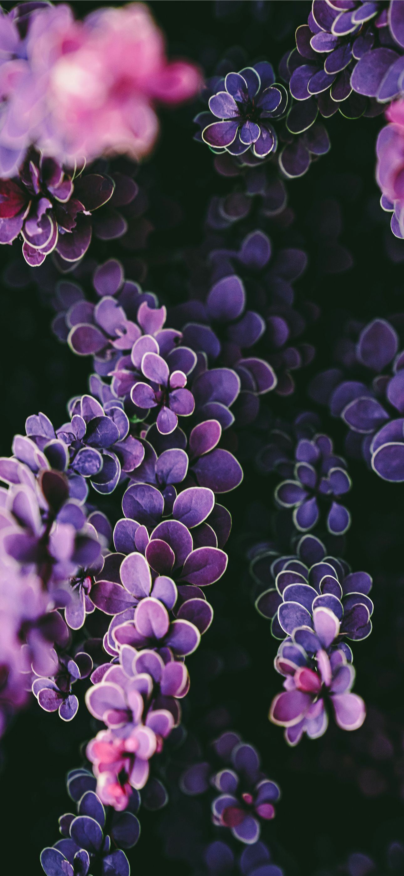 1290x2796 Close up of purple barberry leaves against a dark ... -  iPhone Wallpaper