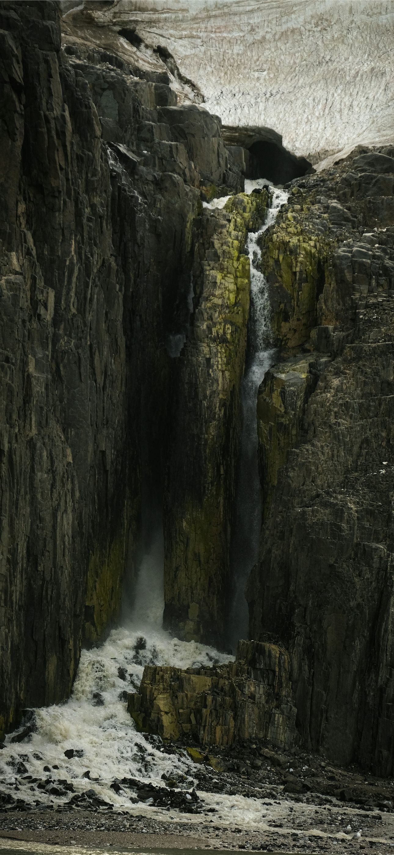 1290x2796 a waterfall in the middle of a rocky cliff -  iPhone Wallpaper