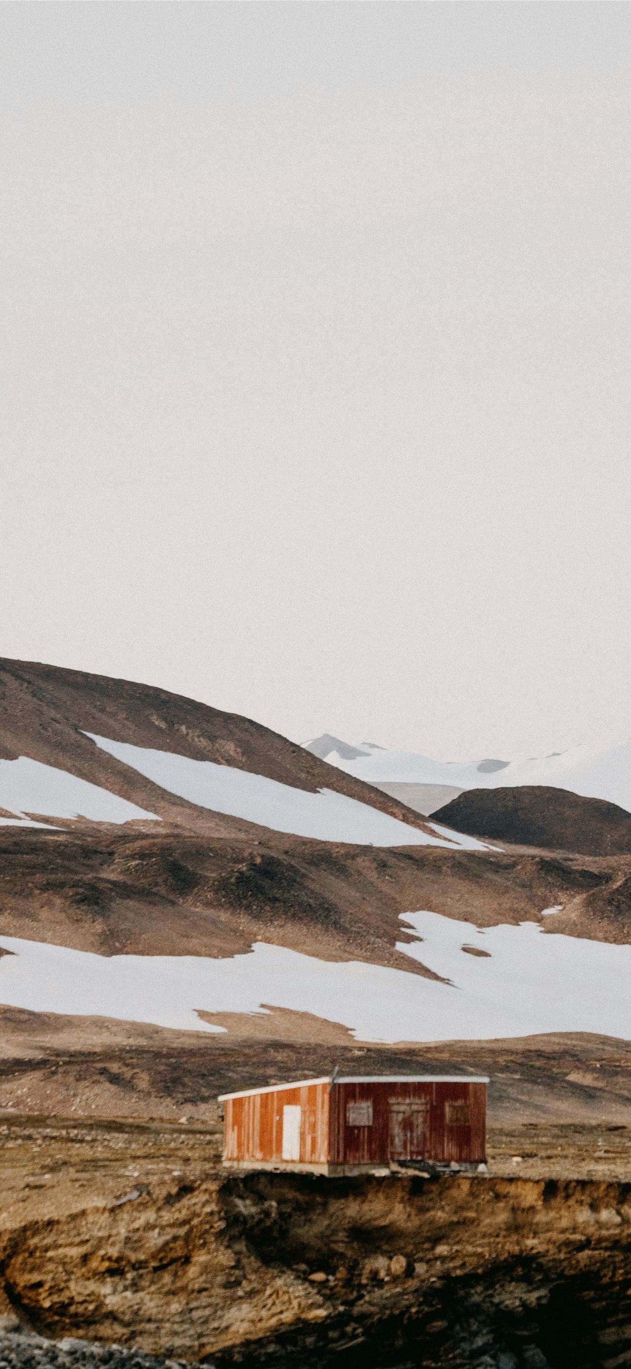 1290x2796 brown wooden house on brown field near snow covere... -  iPhone Wallpaper