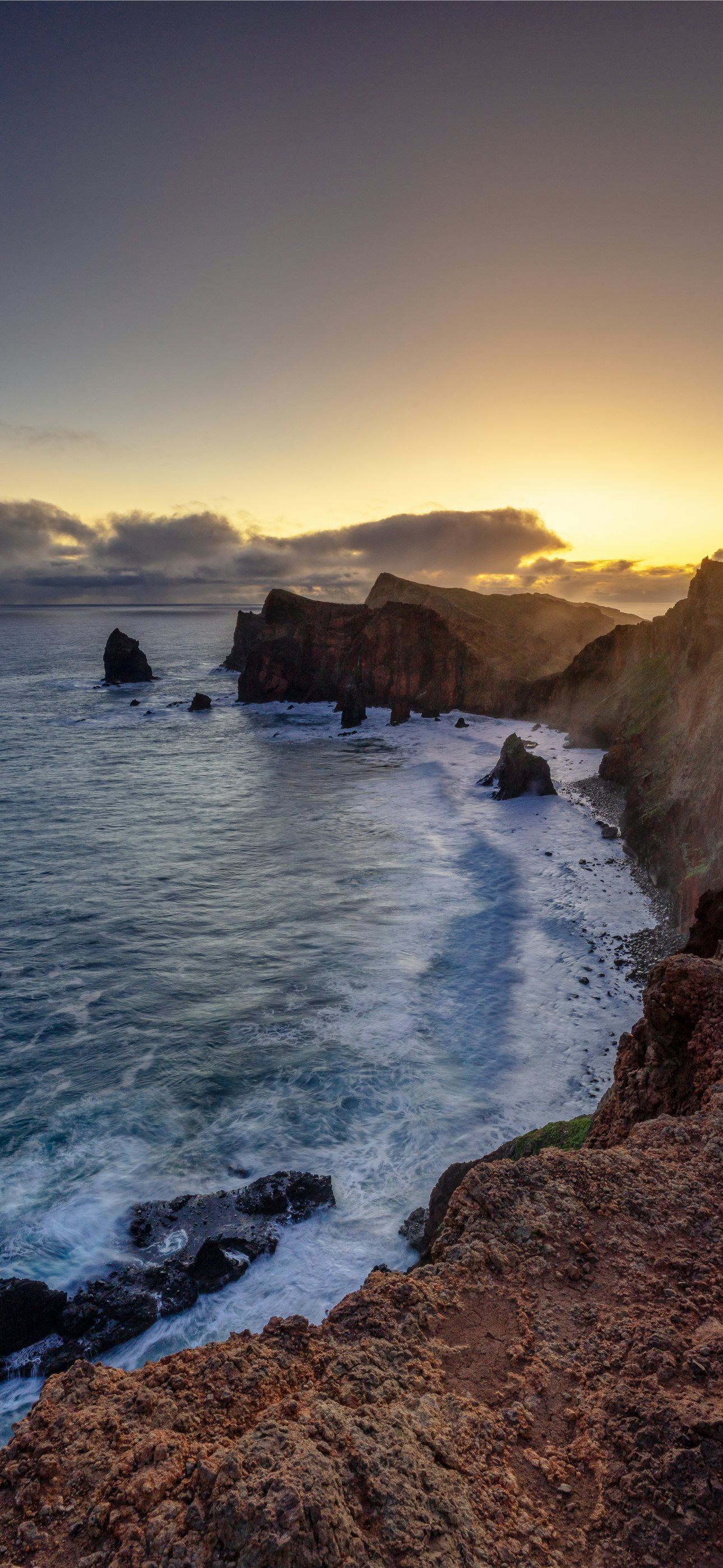 1290x2796 the sun is setting over the ocean near a rocky sho... -  iPhone Wallpaper
