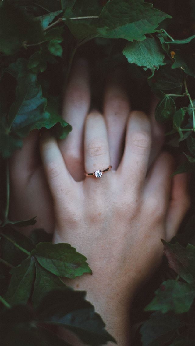 640x1136 gold colored ring on hands surrounded by green lea... -  iPhone Wallpaper