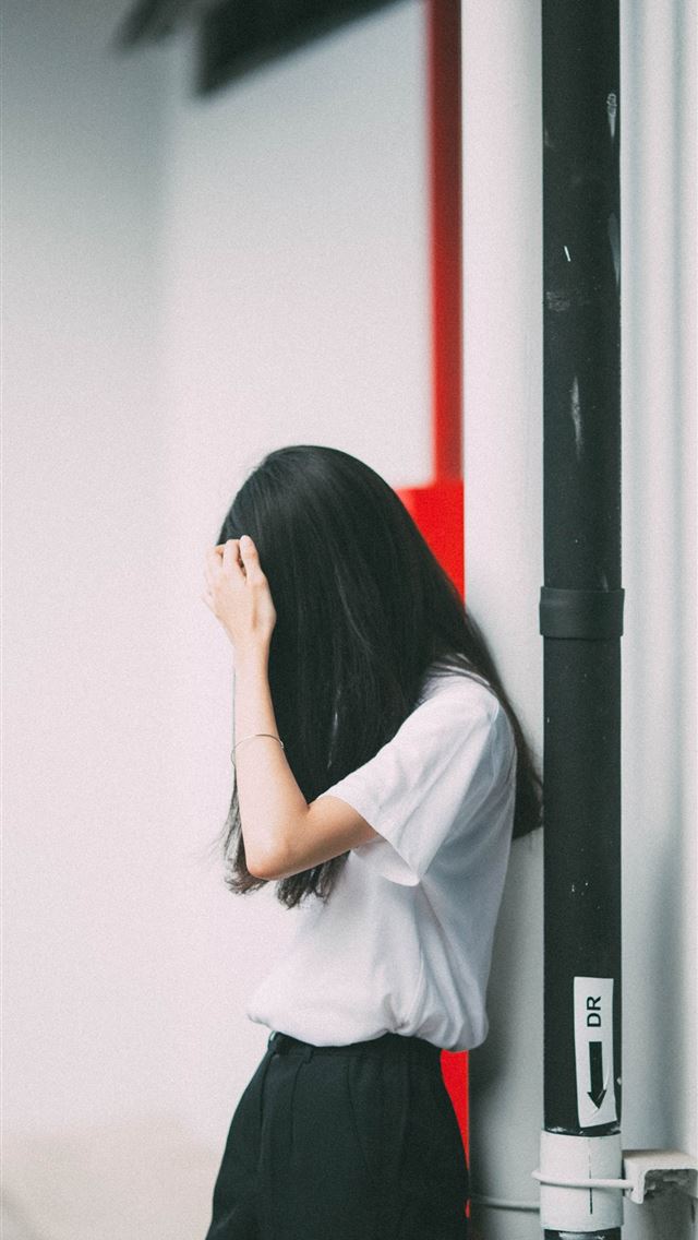 640x1136 woman leaning on white concrete wall -  iPhone Wallpaper