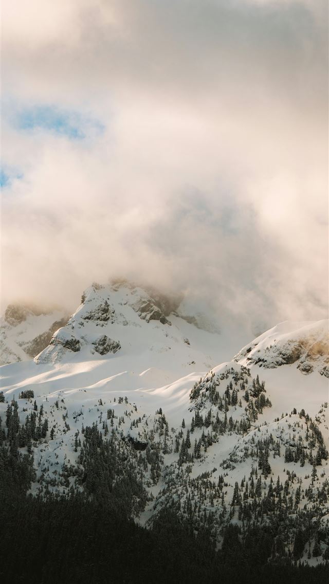 a snow covered mountain under a cloudy sky iPhone wallpaper