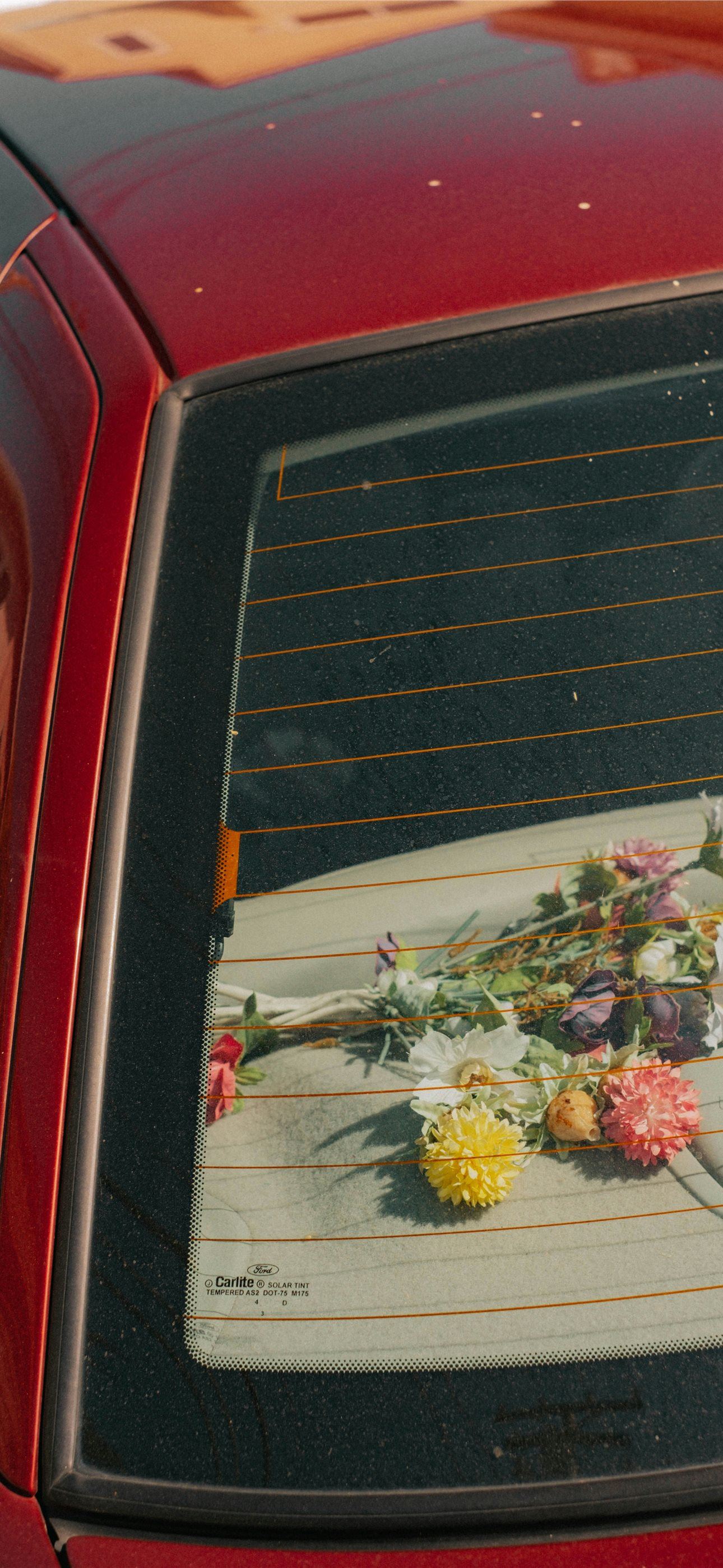 1290x2796 a car with a picture of flowers on the grill -  iPhone Wallpaper