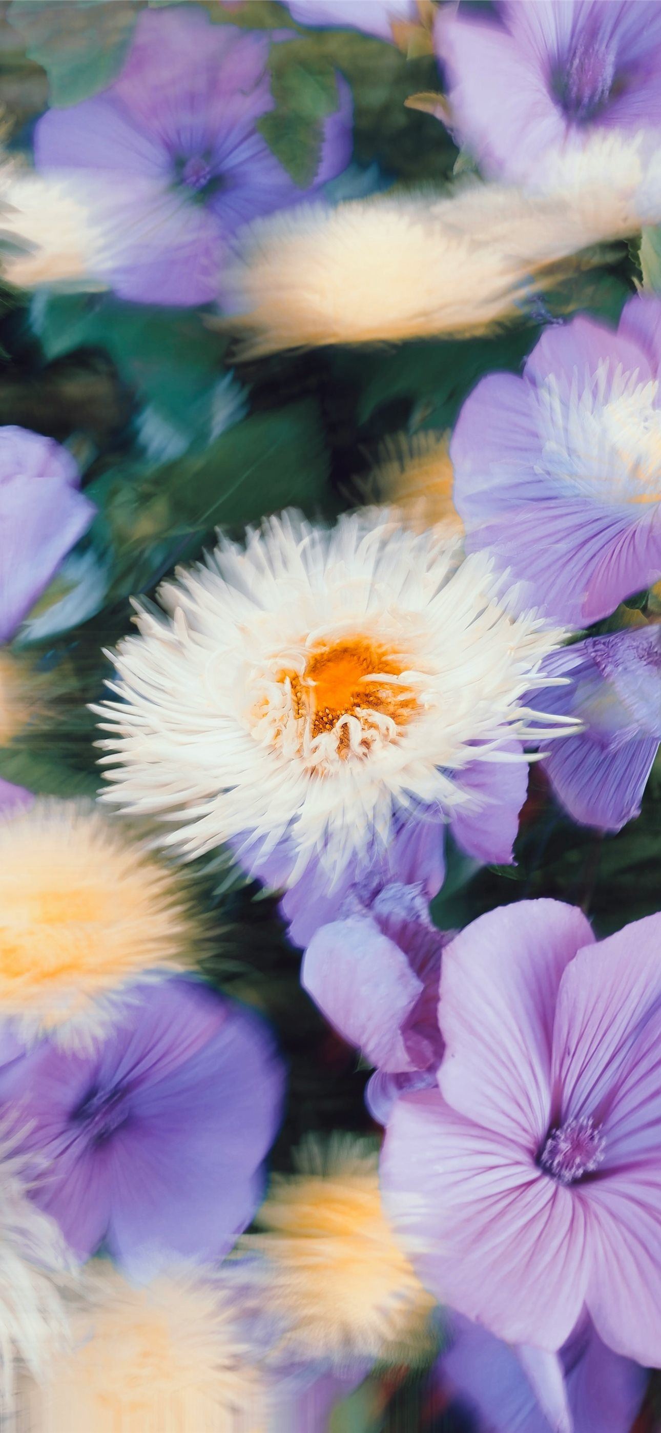 1290x2796 a bunch of purple and white flowers in a field - abstract iPhone Wallpaper
