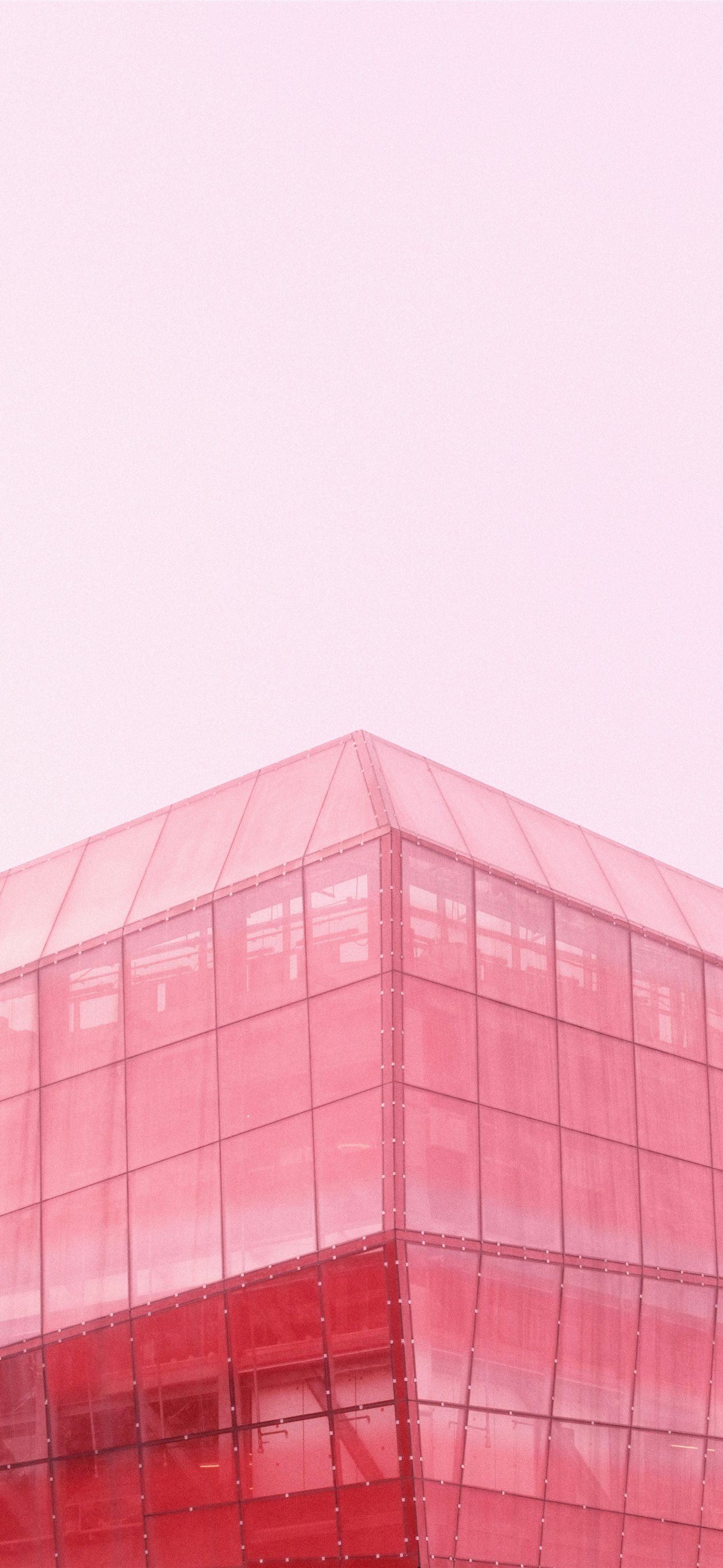 a red glass building with a clock on the top of it iPhone wallpaper