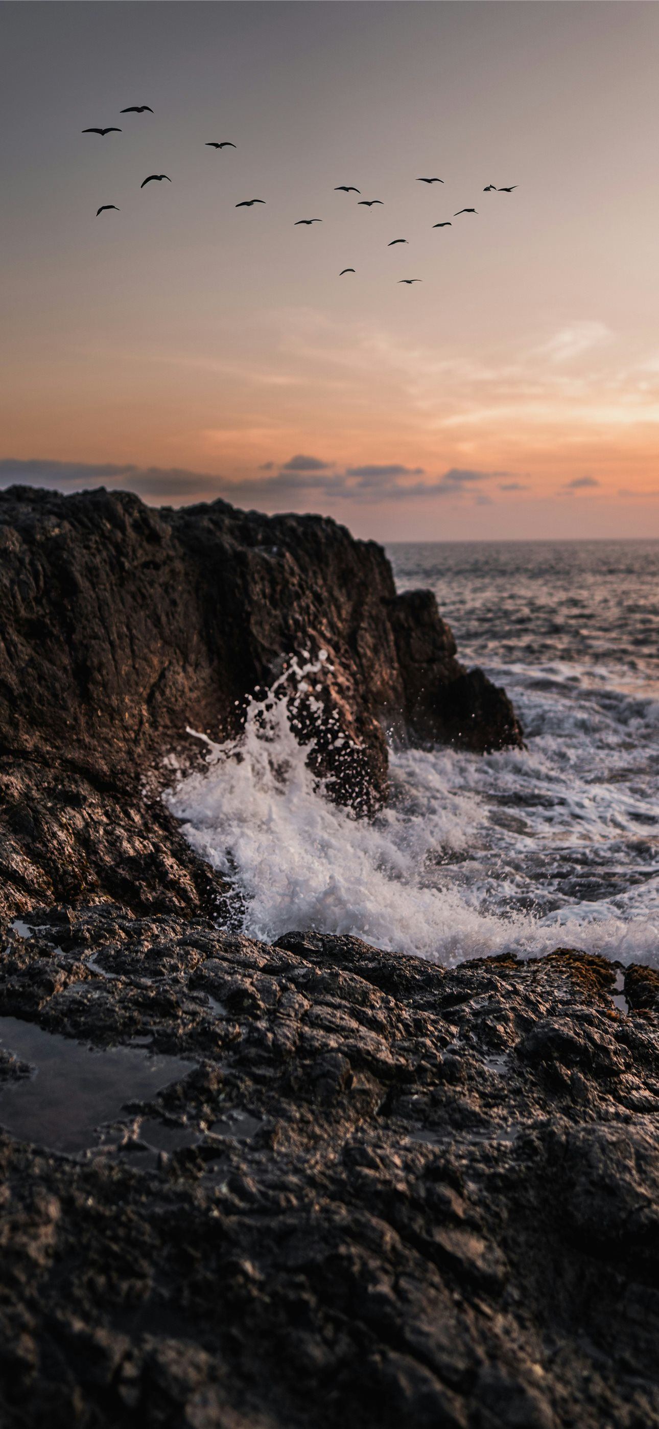1290x2796 a flock of birds flying over a body of water - clouds iPhone Wallpaper