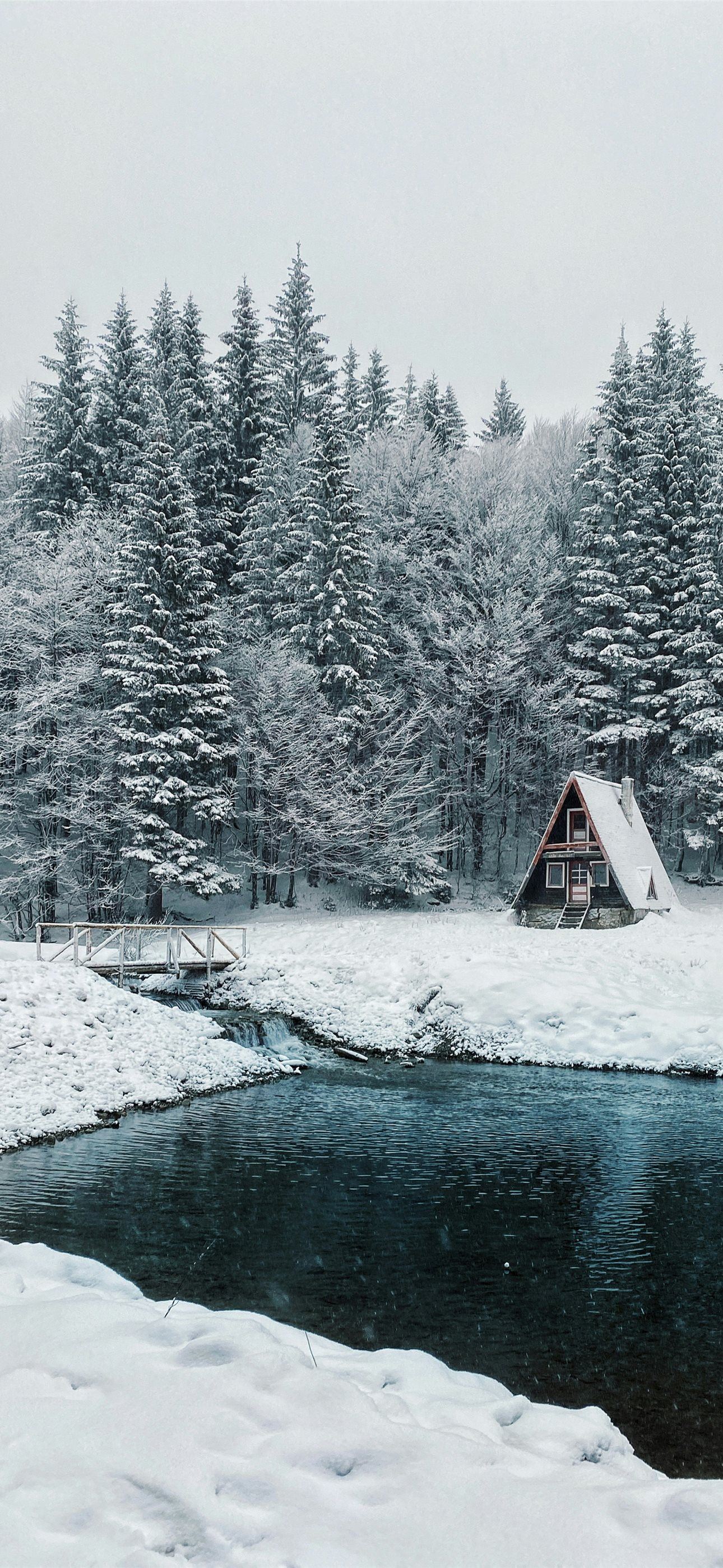 1290x2796 brown and white house near trees covered with snow... - forest iPhone Wallpaper