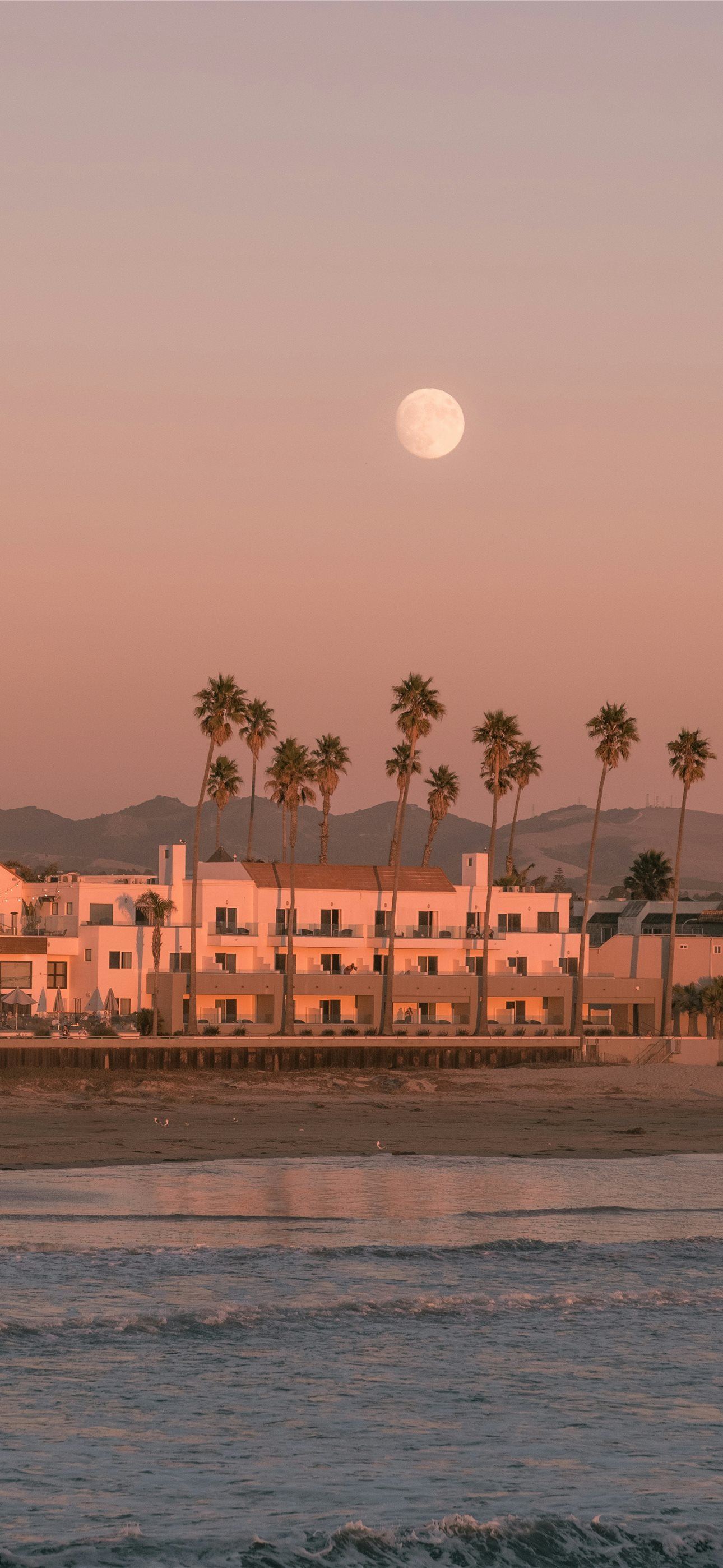 a full moon rising over a beach with palm trees iPhone wallpaper