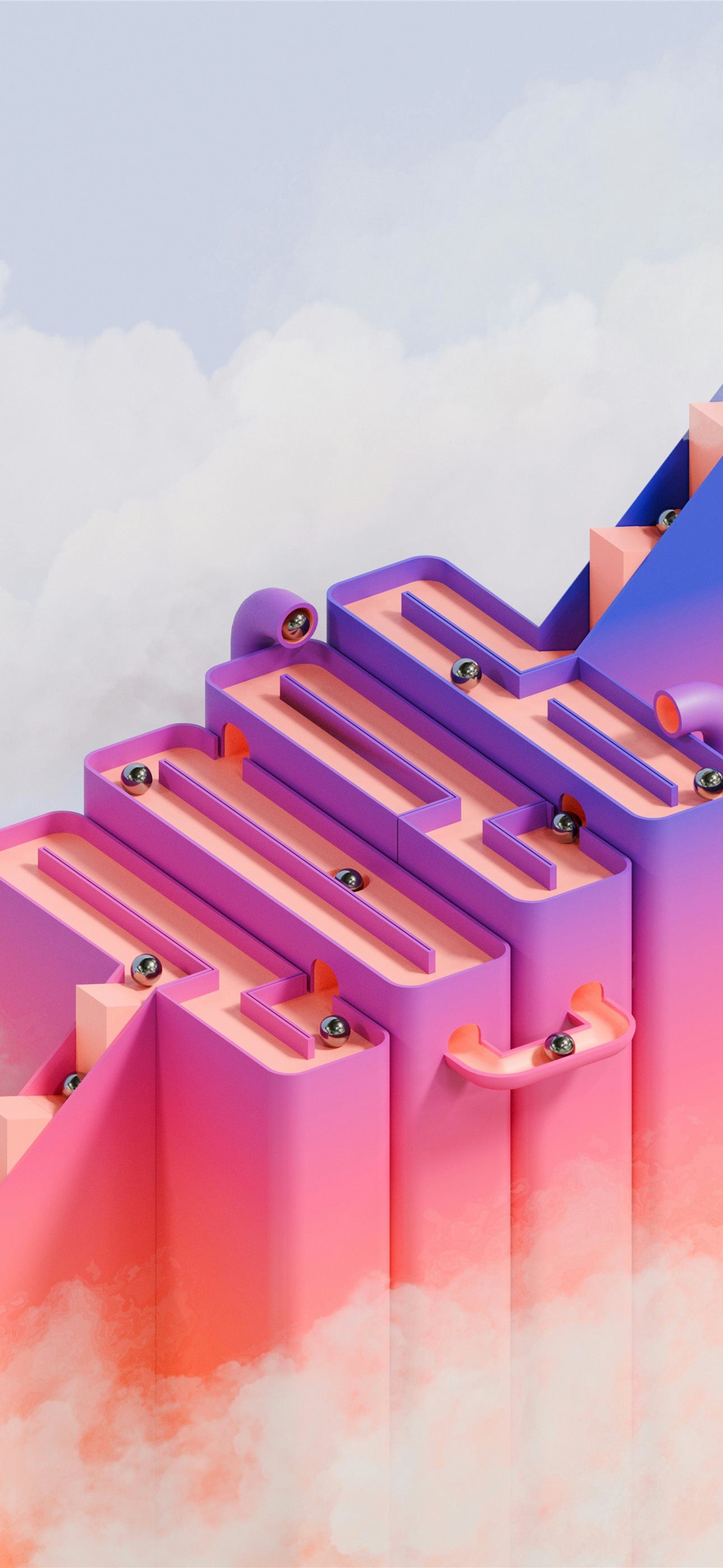1290x2796 Silver balls rolling down a colorful maze structur... - pink iPhone Wallpaper