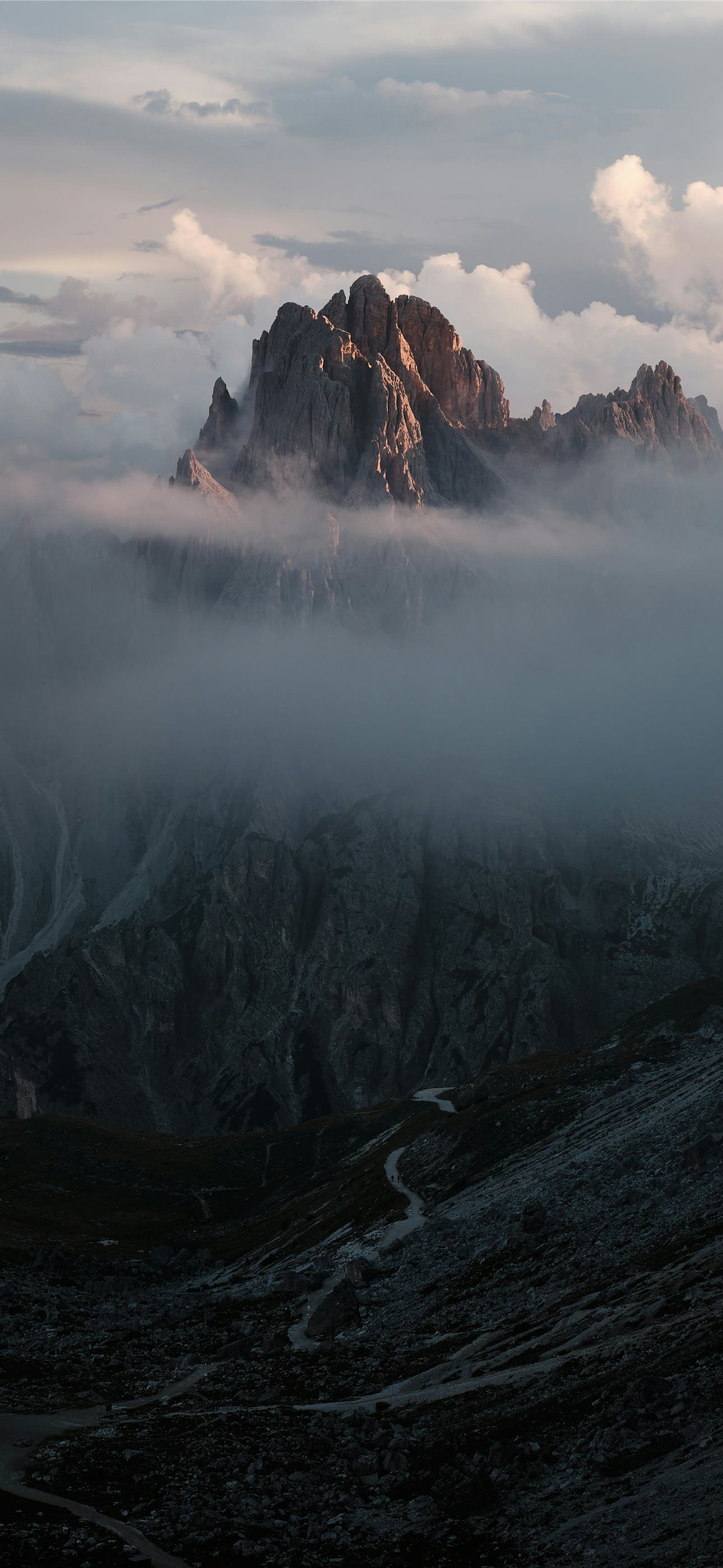 1290x2796 a mountain with clouds - road iPhone Wallpaper