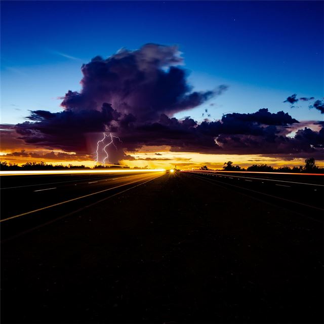 1024x1024 thunder storm lightning highway light trails 5k - light iPad Wallpaper