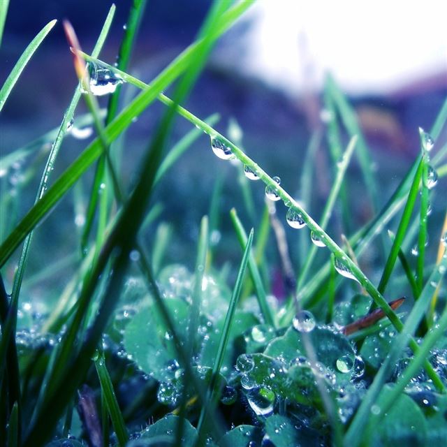 1024x1024 Grass morning dew drops light - light iPad Wallpaper