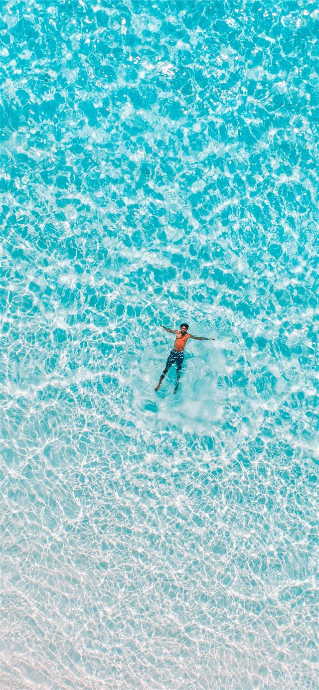 bird's eye view of man on body water iPhone 11 wallpaper