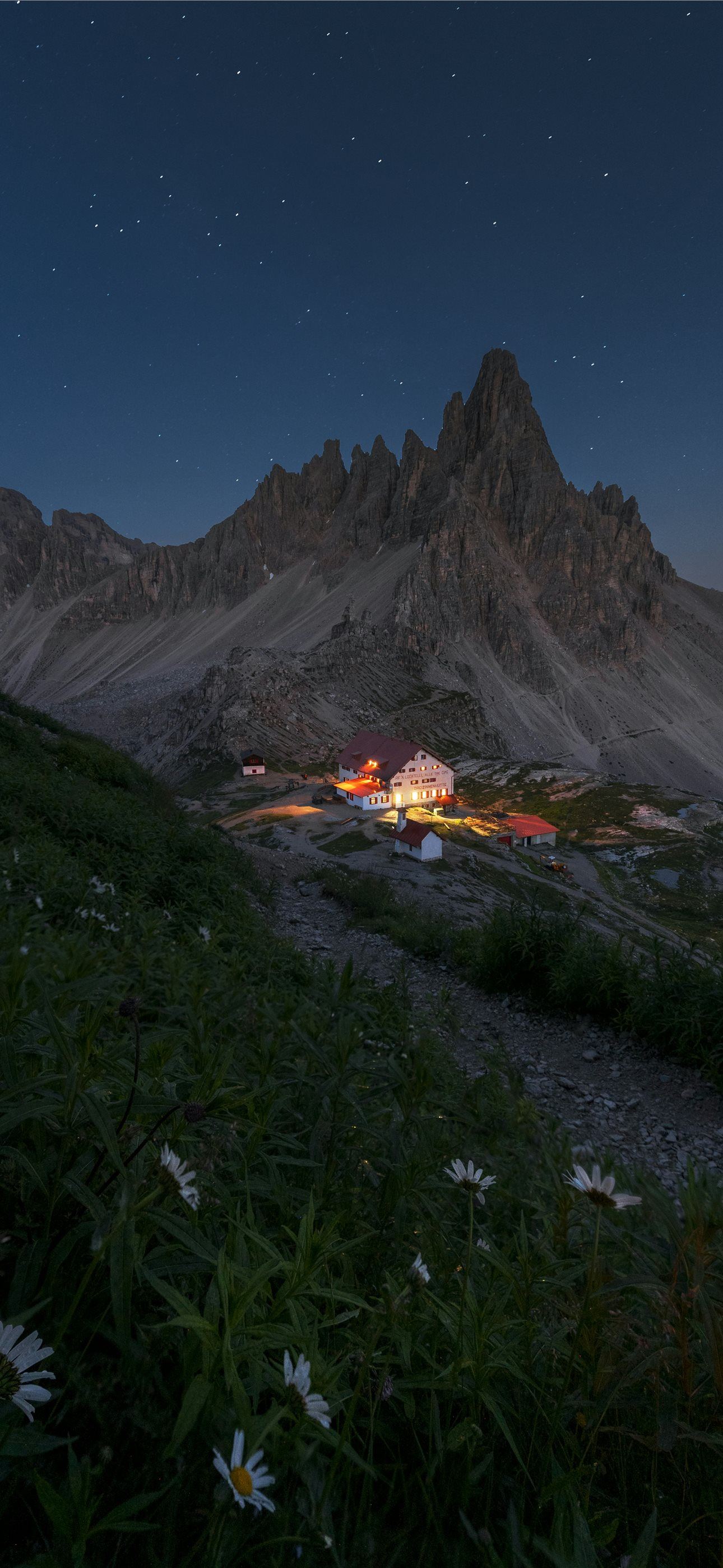 1290x2796 Mountain refuge illuminated at night under starry ... - mountain range iPhone Wallpaper