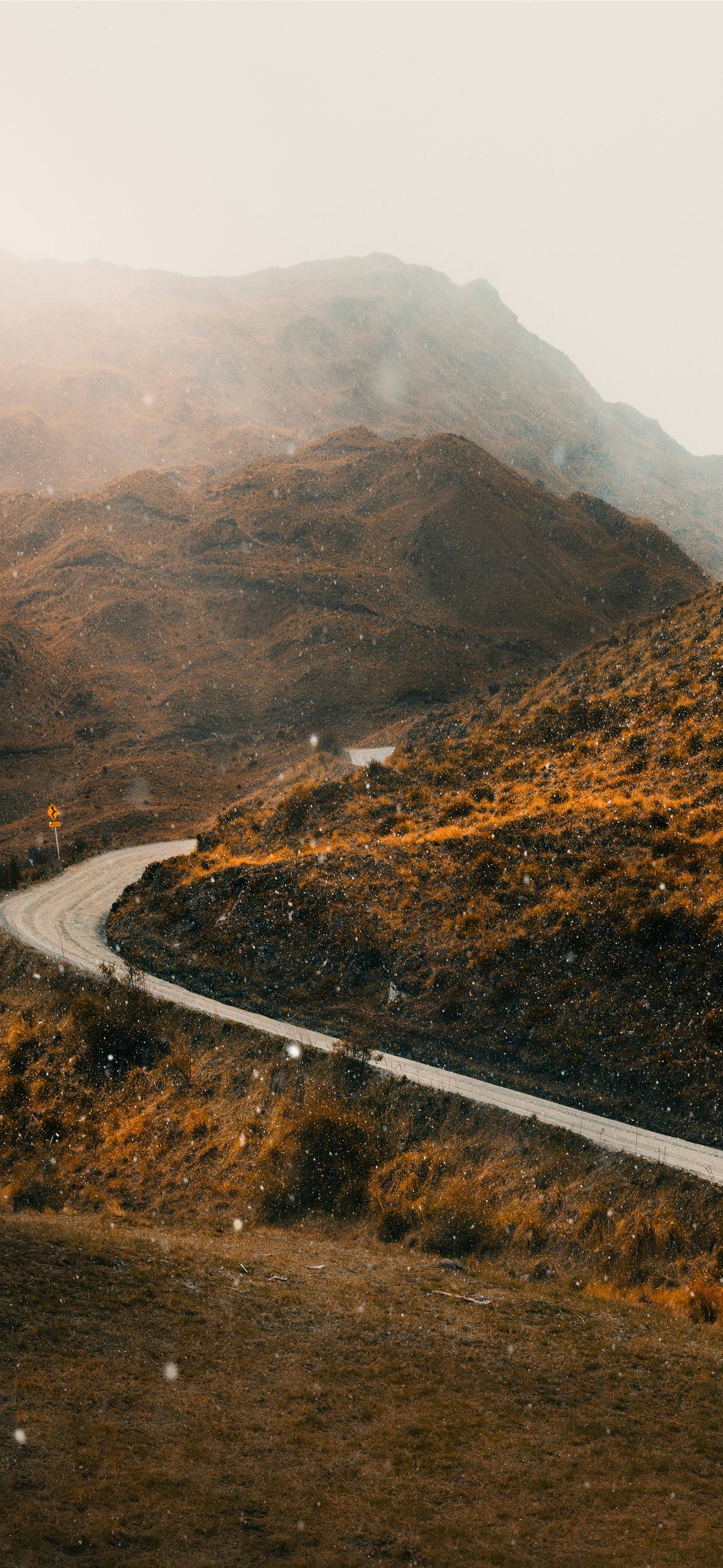 1290x2796 a winding road in the mountains on a foggy day - new zealand iPhone Wallpaper