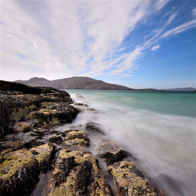 seascape front scenery blue rocks 5k iPad wallpaper