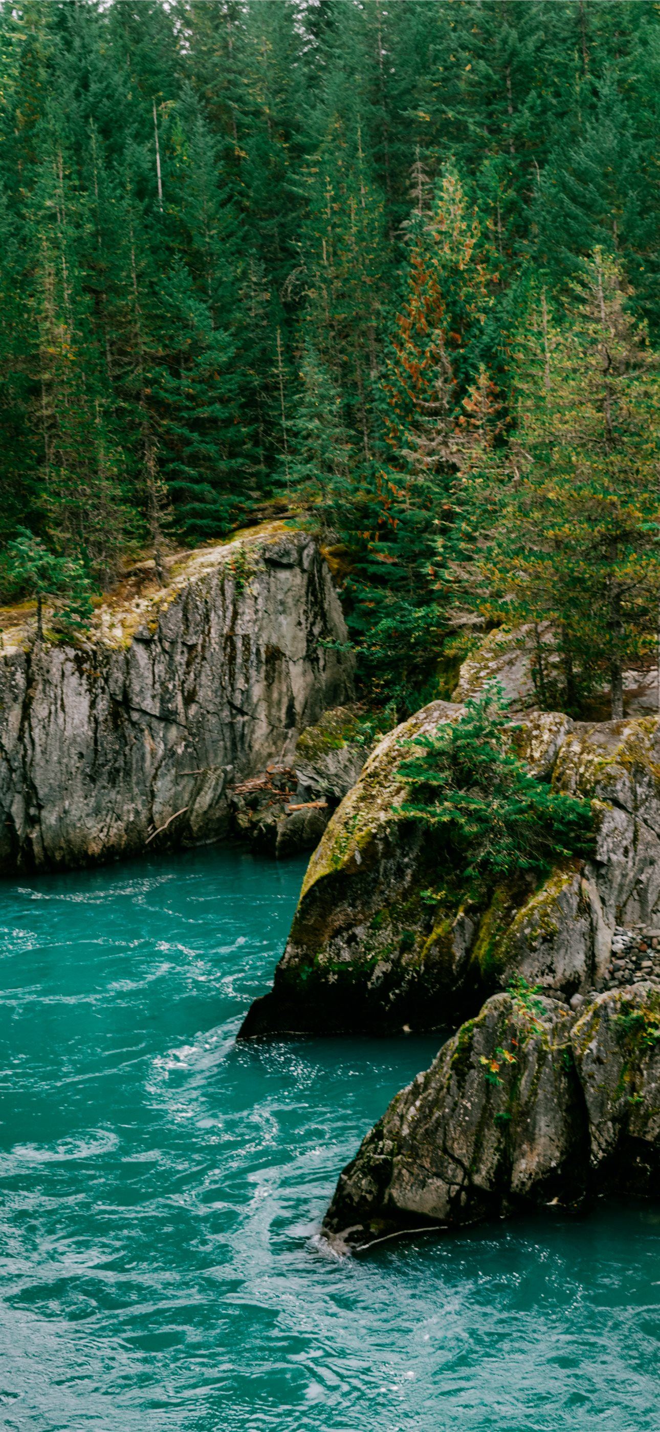 1290x2796 a river flowing through a lush green forest - trees iPhone Wallpaper