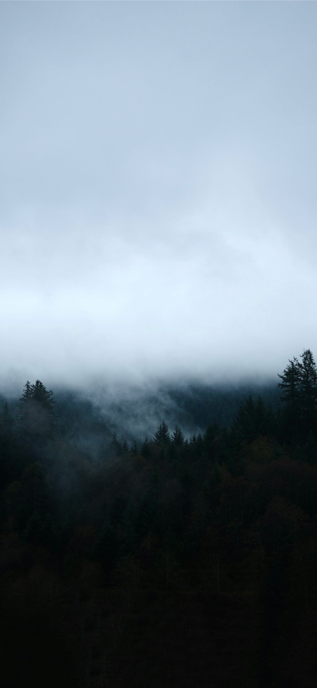 Misty forest landscape with dark trees and fog iPhone wallpaper