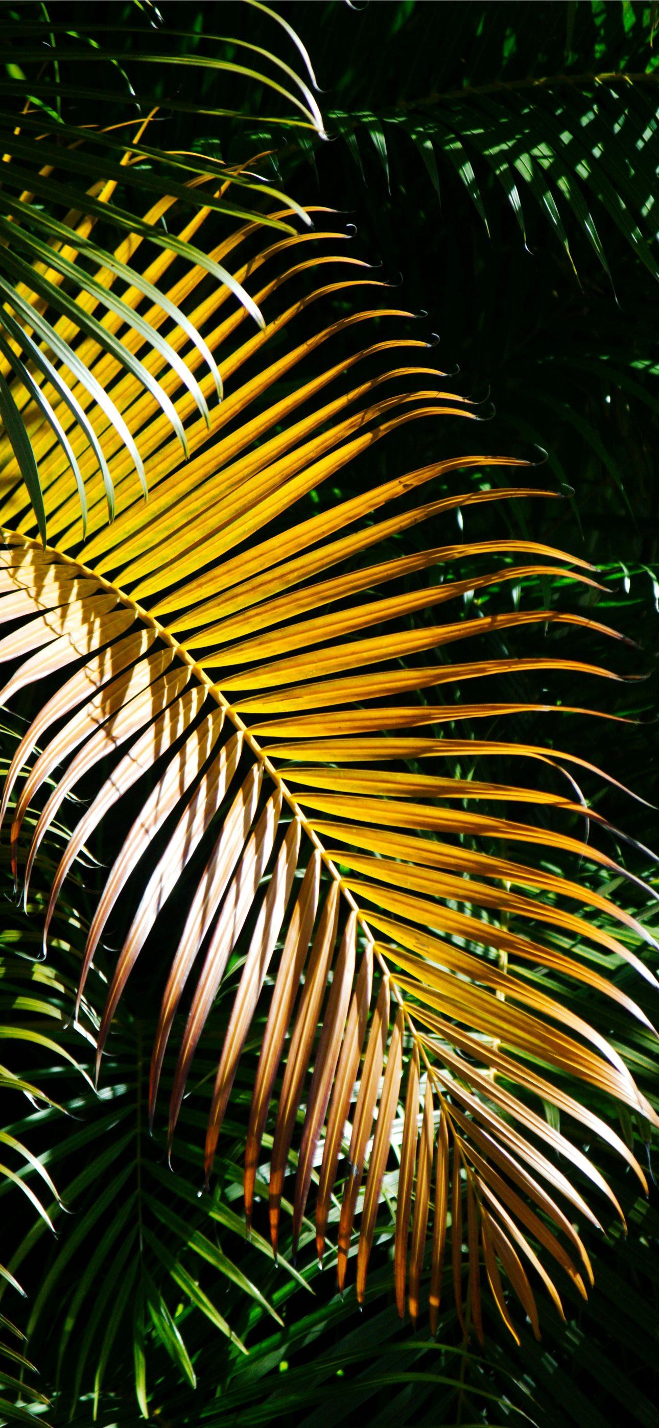 1290x2796 a close up of a palm tree with yellow leaves - tropical iPhone Wallpaper