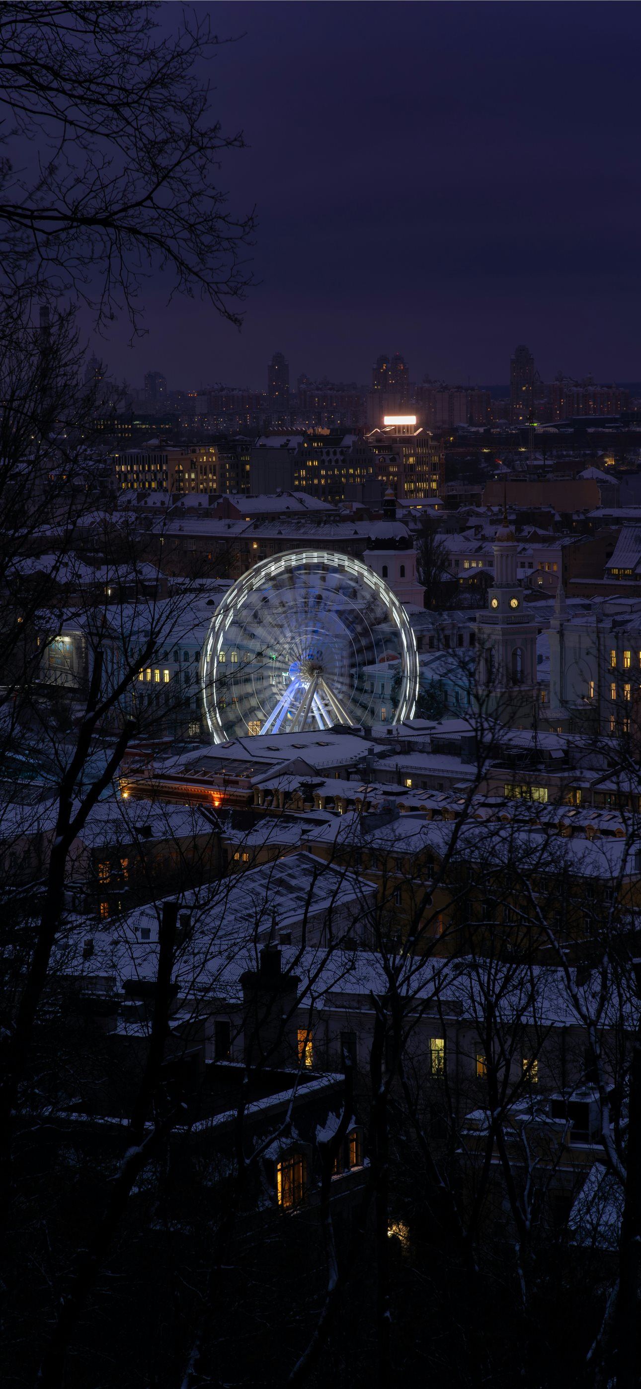 a ferris wheel in the middle of a city at night iPhone wallpaper