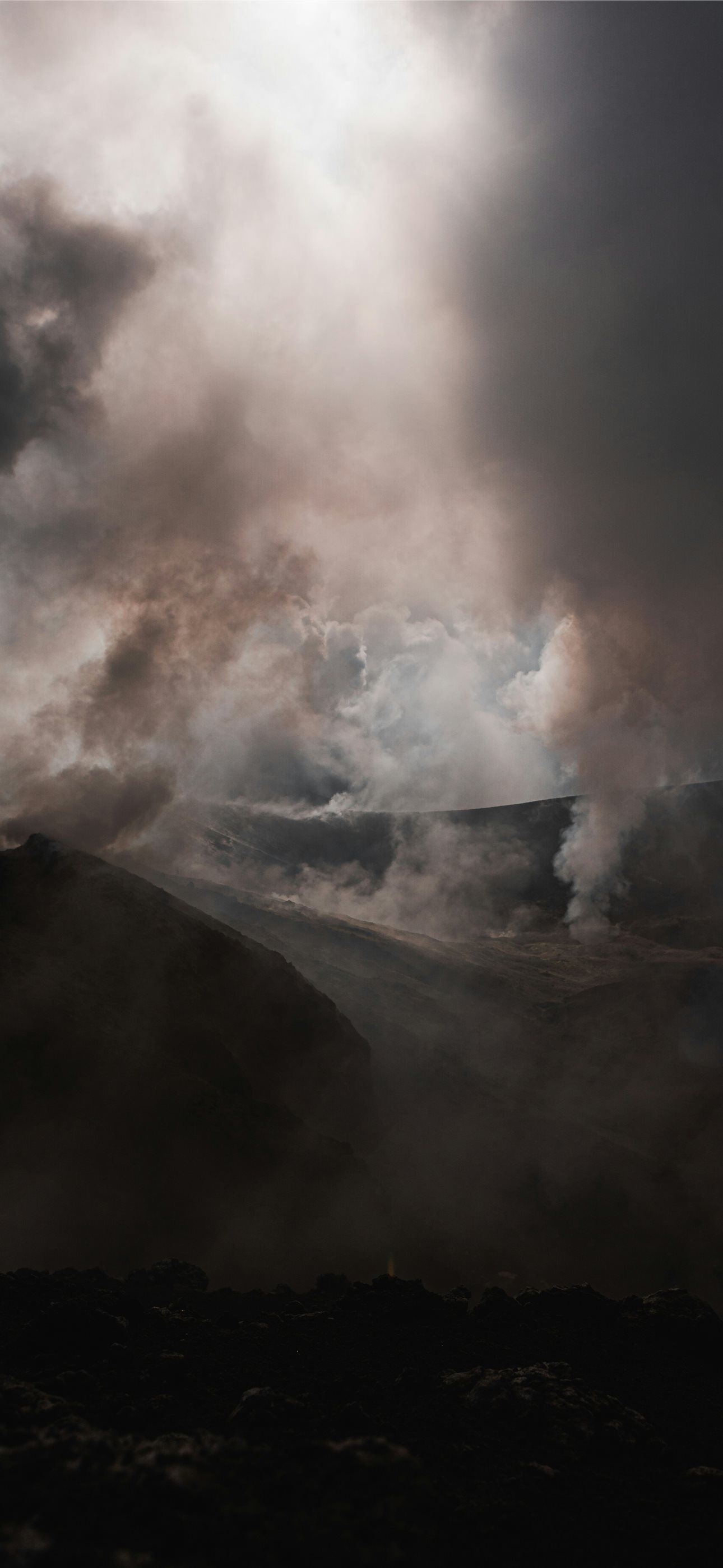 1290x2796 a black and white photo of smoke coming out of a m... - volcano iPhone Wallpaper